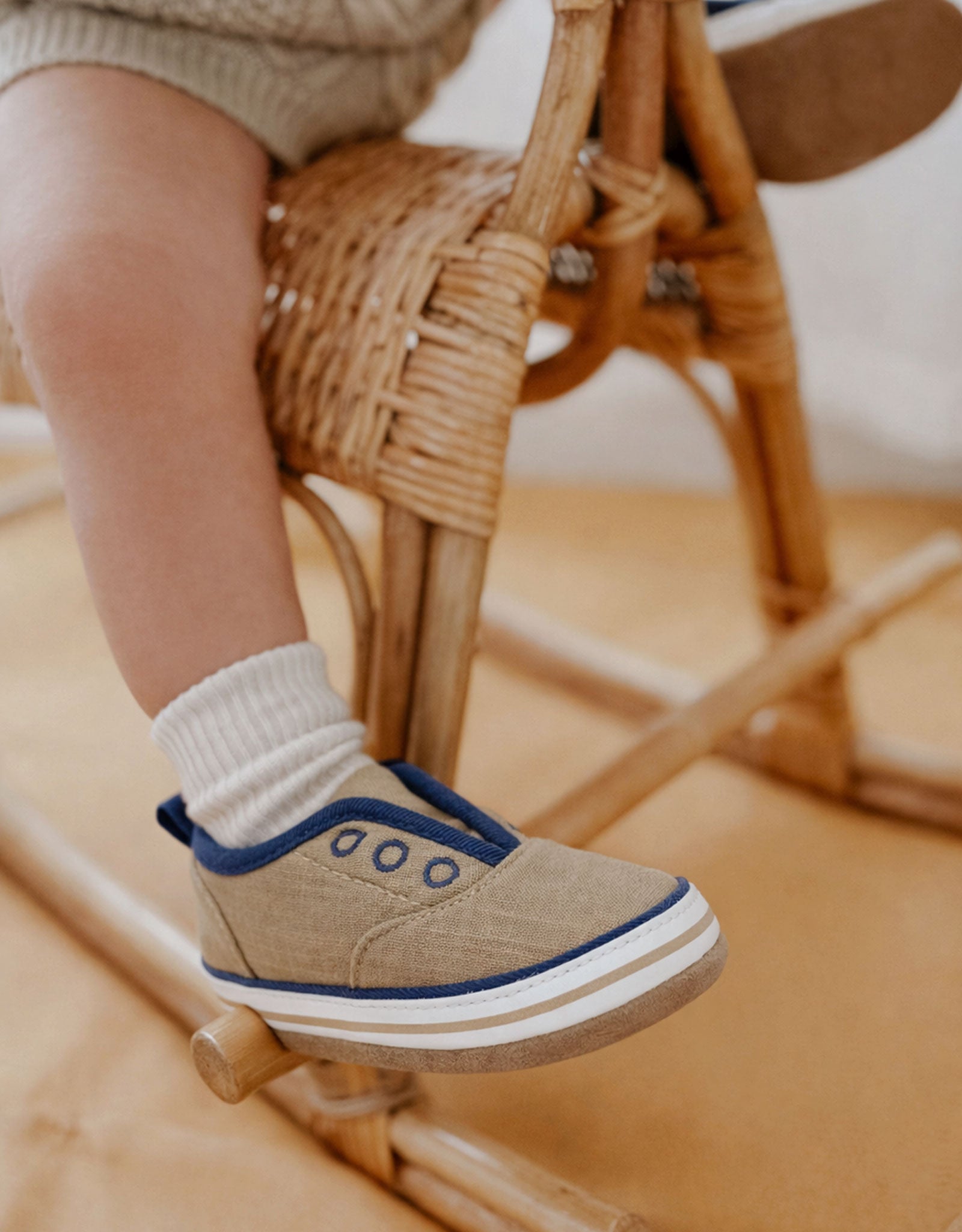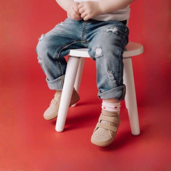 Designed to mimic bare feet, these soft-sole shoes are APMA-approved for supporting healthy foot development and feature no-slip suede soles.