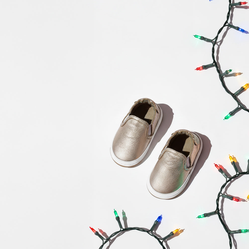 Designed to mimic bare feet, these soft-sole shoes are APMA-approved for supporting healthy foot development and feature no-slip suede soles.