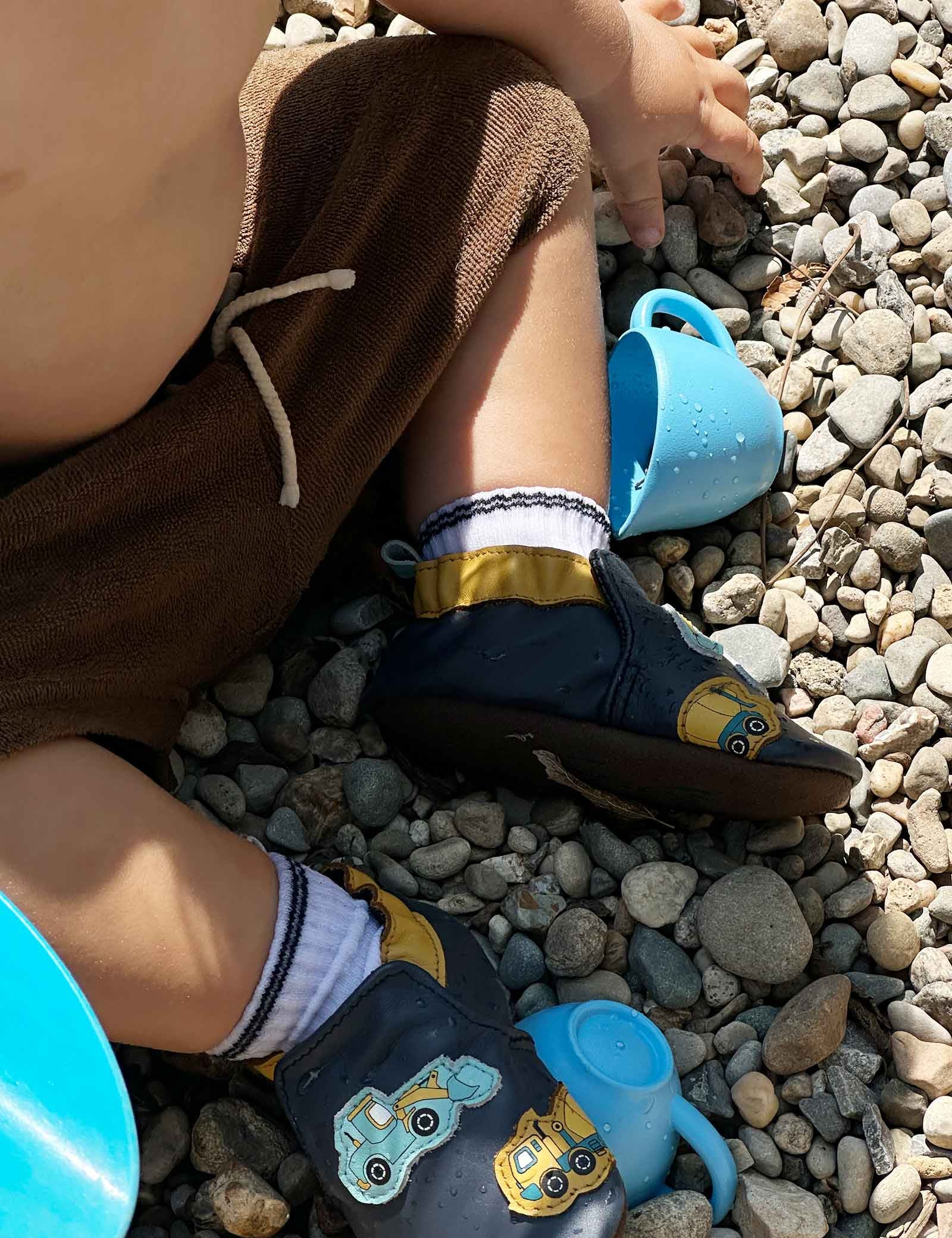 Designed to mimic bare feet, these soft-sole shoes are APMA-approved for supporting healthy foot development and feature no-slip suede soles.