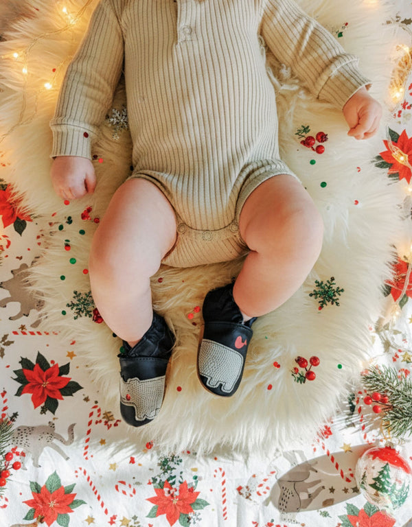 Designed to mimic bare feet, these soft-sole shoes are APMA-approved for supporting healthy foot development and feature no-slip suede soles.