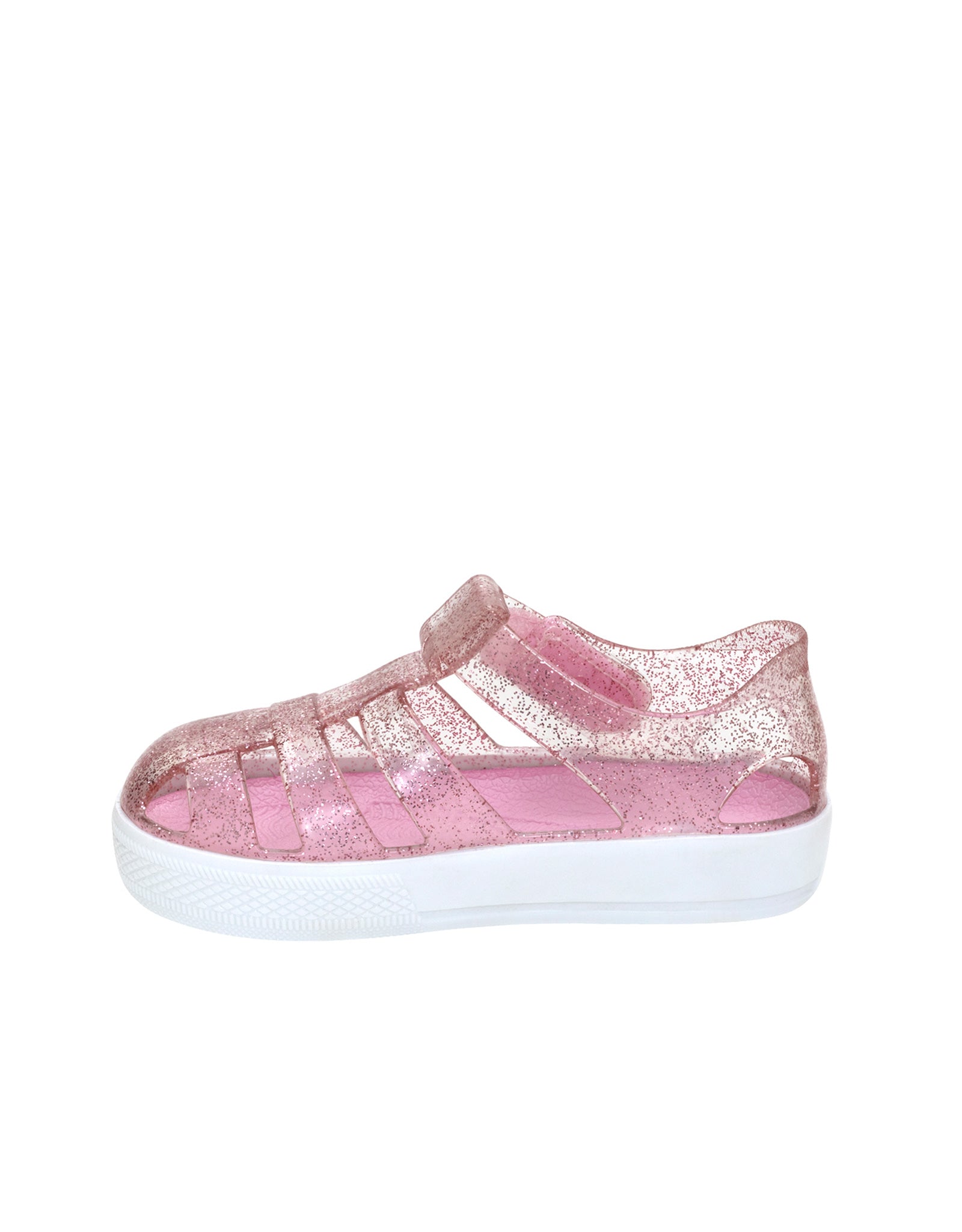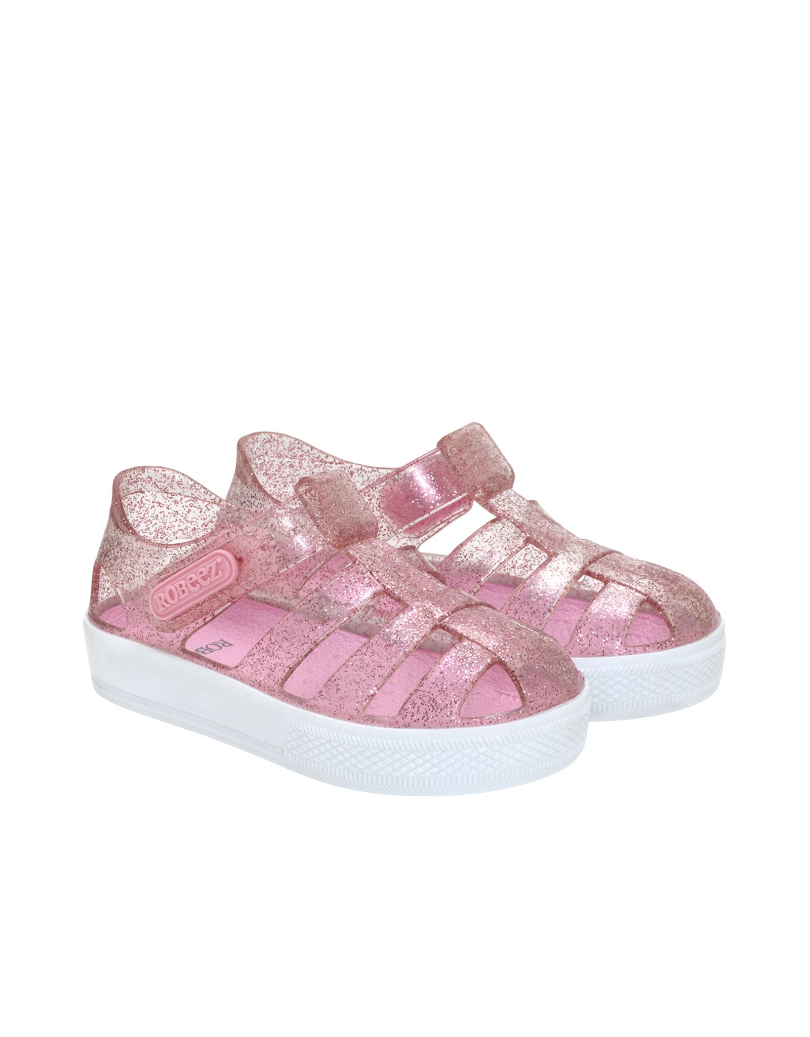 With a sparkling transparent glitter outsole, Elite Glitz Jelly Shoes in Pink combine a water-resistant jelly upper, easy velcro closure, fast-drying open sandal design, and a non-slip PVC sole to keep little feet protected, comfortable, and ready for every splash-filled adventure.