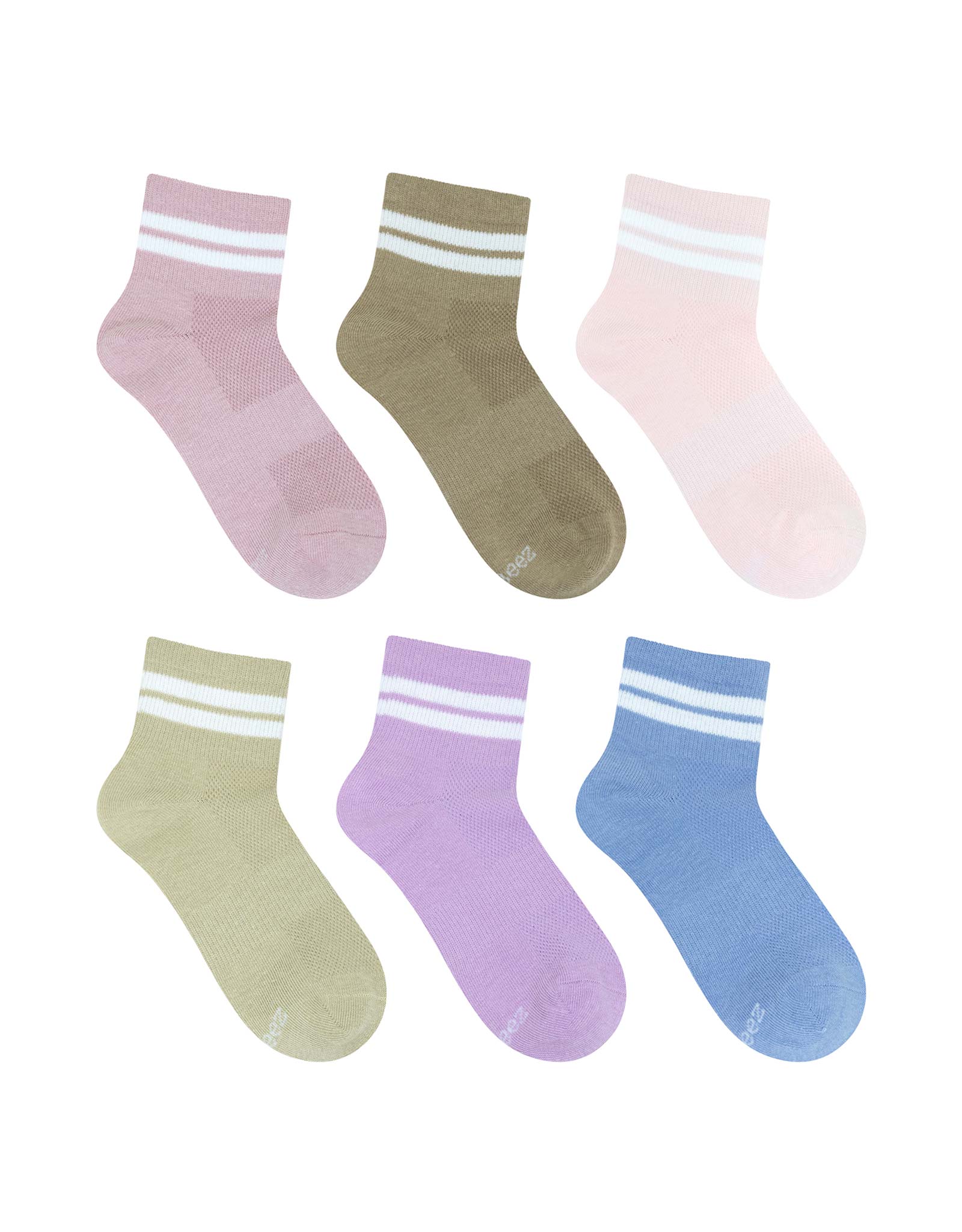 Nadia Striped 6-Pack Quarter Socks in Neutral for Toddlers and Kids