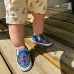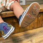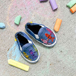 The Crayola® Pals Soft Soles in Navy add a burst of creativity and fun to your toddler's wardrobe. Featuring a navy canvas design with adorable Crayola® crayons holding hands. What makes them even more special is that the artwork changes when exposed to the sun, adding an extra touch of magic to each step. With flexible, non-constricting soles, these shoes provide comfort and freedom for active little ones, perfect for playtime and everyday adventures.