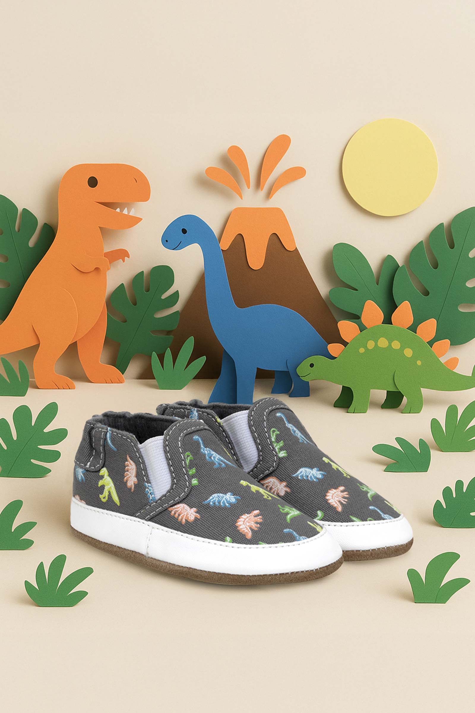 Glowing Dinos Soft Soles Charcoal Grey