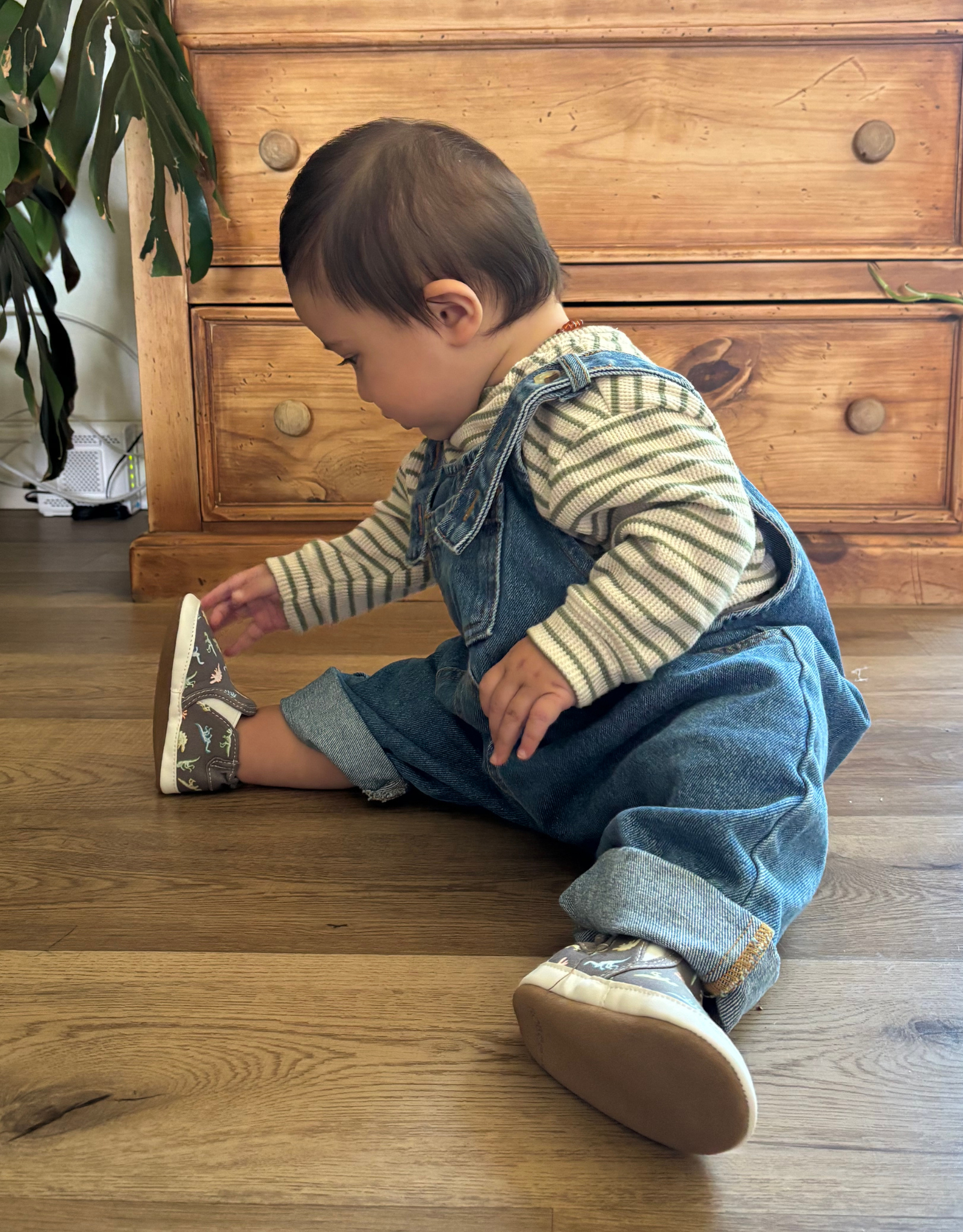 Are you ready to glow? Introducing Glowing Dinos soft soles by Robeez your baby is sure to stand out day and night. At daytime this shoe is a stylish grey canvas with all over dino multi colored print, but at night you get to see the dinos glow-in-the-dark. The suede bottom is flexible with movement, making it easy to wear, while still staying on his foot. The room to grow ensures that they'll fit comfortably even when they're at their biggest!