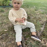 The Liam Soft Soles in Chocolate are crafted for comfort, movement, and everyday style. Made with genuine leather and a flexible sole, they support natural foot development while offering a barefoot feel for early walkers. The roomy toe box allows for healthy growth, and the elasticized ankle keeps them snug without slipping off. This classic chocolate brown pairs effortlessly with any outfit — making them the perfect go-to shoes for daily play, first steps, or casual family outings.