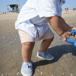 The Sebastian Shark Soft Soles in blue are a pretty jaw-some pair for your baby's sneaker collection. These light blue baby leather shoes are designed as Sebastian the Shark with a leather upper and soft, suede sole. Further details of these toddler shark shoes include three-dimensional gills, a fin, and tail. As your little one tests the waters of walking, there is comfort in knowing these Soft Sole shoes have a roomy silhouette that allows feet to wiggle, grow, and develop in a healthy way.