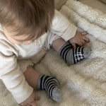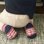 Parents love our socks because they stay on in all kinds of play. An elastic gather at the ankle ensures that our socks stay on while a skid resistant application on the soles helps prevent slips and falls. Once you try our socks, you and your baby will love them as well