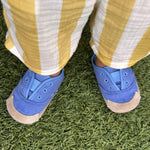 Your little one's first steps just got a whole lot cuter. Introducing the Pacific First Kicks in Blue - the perfect blend of style and support for those tiny toes. Theseespadrille-inspired feature asoft chambray upper with faux eyelets, they showcase a classic nautical look perfect for any little explorer. The flexible, non-slip rubber and suede sole provides stability and traction, while the supportive footbed encourages healthy foot development. With an easy slip-on design,these shoes ensure a versatile choice for your little ones on the move.