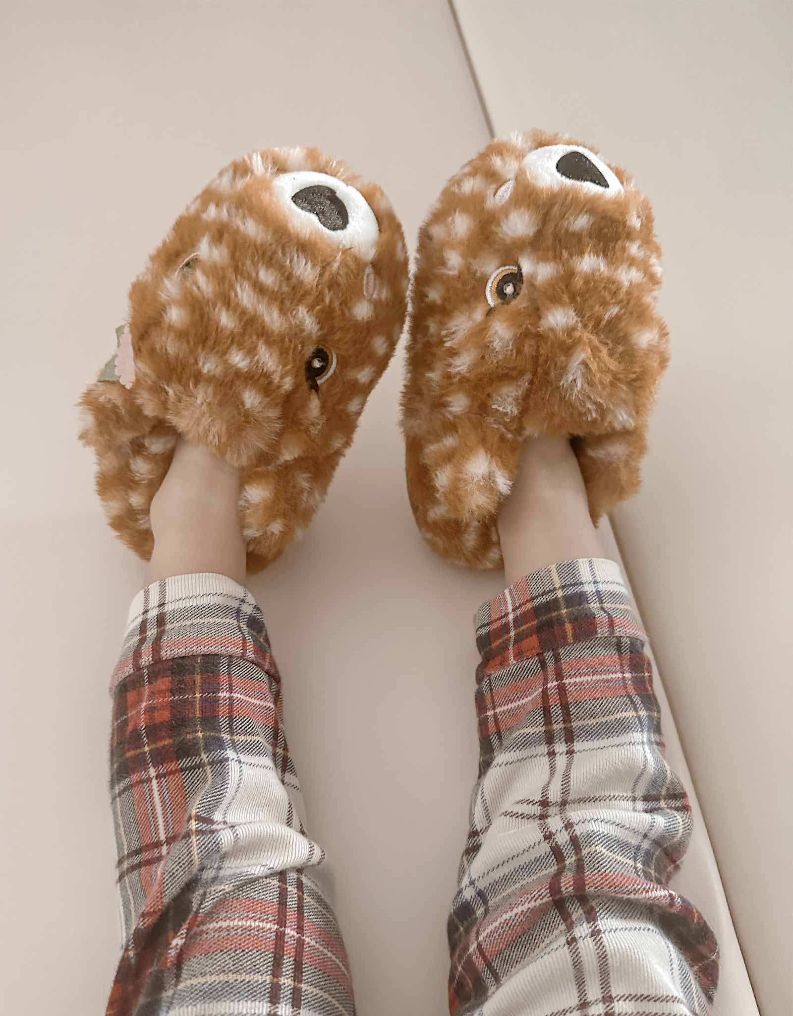 Terry & faux fur upper, faux suede outsole & non-skid rubber print