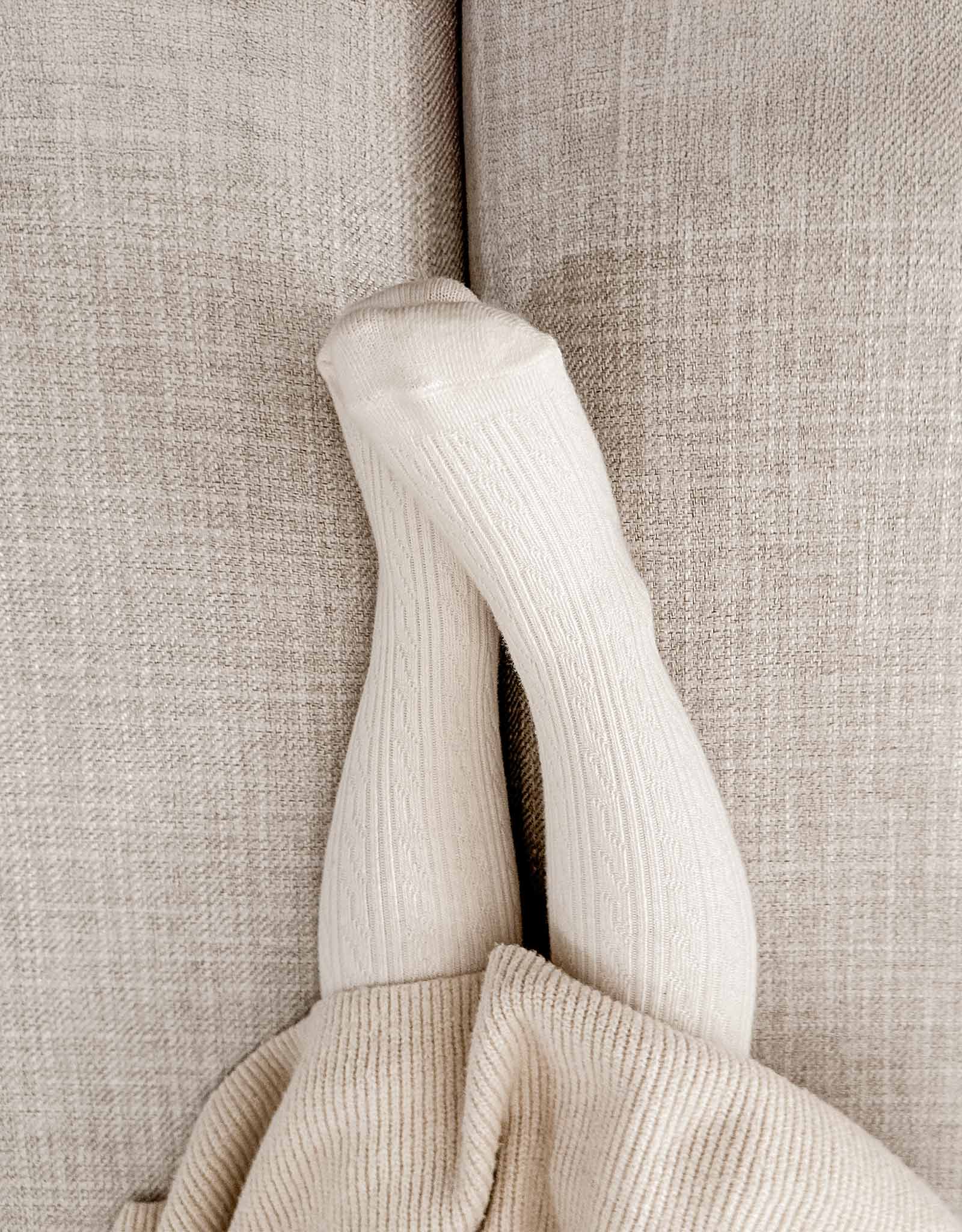 The Robeez Britany 2-pack Cotton-Rich Footed Heavyweight Tights are the perfect finishing touch in the chilly weather. The set includes an Ivory cable knit tight and a Heather Grey ribbed pattern tight. The breathable, stretchy material provides flexibility and comfort while the full elastic the full elastic waistband keeps the tights secure in place.