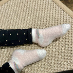 Parents love our socks because they stay on in all kinds of play. An elastic gather at the ankle ensures that our socks stay on while a skid resistant application on the soles helps prevent slips and falls. Once you try our socks, you and your baby will love them as well