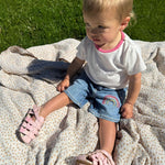 Tiny toes deserve the softest, sweetest style. Introducing the Mariposa First Kicks in Light Pink - a heavenly sandal that's just as comfy as it is cute.Designed in a classic fisherman sandal silhouette, they feature a leather upper, and a flexible suede sole that offers stability and protection for little feet learning to walk. Adorned with delicate light pink butterflies, these sandals add a charming, playful touch to any outfit. Perfect for warm-weather adventures, the Mariposa First Kicks provide both comfort and confidence for little ones on the move.