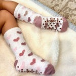 The Princess Cat Cozies 3-Pack Crew Socks in Neutral for Toddlers and Kids bring a touch of royalty and charm to little feet. Made with soft, cozy yarn, this set includes three pairs: a brown pair featuring an adorable cat with 3D ears and a 3D crown, a pastel pink pair for a sweet and simple look, and a beige pair with heart patterns in neutral tones. Perfectly comfortable and stylish, these socks will add a fun, playful twist to any outfit.