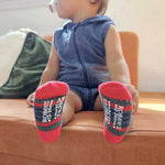 Parents love our socks because they stay on in all kinds of play. An elastic gather at the ankle ensures that our socks stay on while a skid resistant application on the soles helps prevent slips and falls. Once you try our socks, you and your baby will love them as well