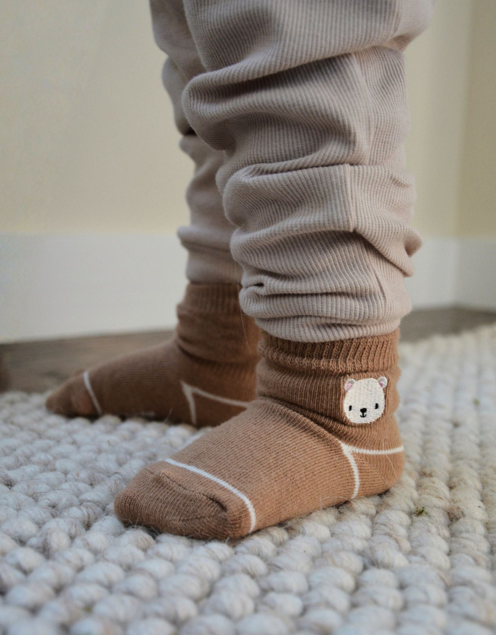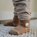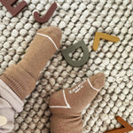 Parents love our socks because they stay on in all kinds of play. An elastic gather at the ankle ensures that our socks stay on while a skid resistant application on the soles helps prevent slips and falls. Once you try our socks, you and your baby will love them as well