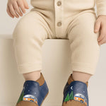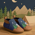 The Under The Stars Soft Soles in Dark Blue bring a sprinkle of nighttime magic to every step, featuring a charming truck graphic amidst delicate star prints on a deep blue background. Made with a flexible suede outsole and soft upper, these shoes provide gentle grip and support as little ones explore their world. With a roomy fit that allows natural foot movement, they're perfect for adventurous days and cozy evenings under the stars.