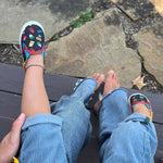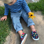 The Crayola Never Run with Scissors soft soles by Robeez is perfectly designed for the littlest of feet. The shoes features a navy upper with an all-over printed upper with the iconic and innovative art tools that Crayola is known for and with an embroidered detail suede bottom it gives your babies feet room to grow. They are flexible with movement and non-constricting for better balance and stay on, play on power.
