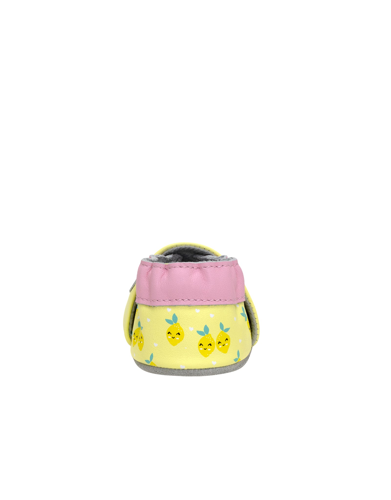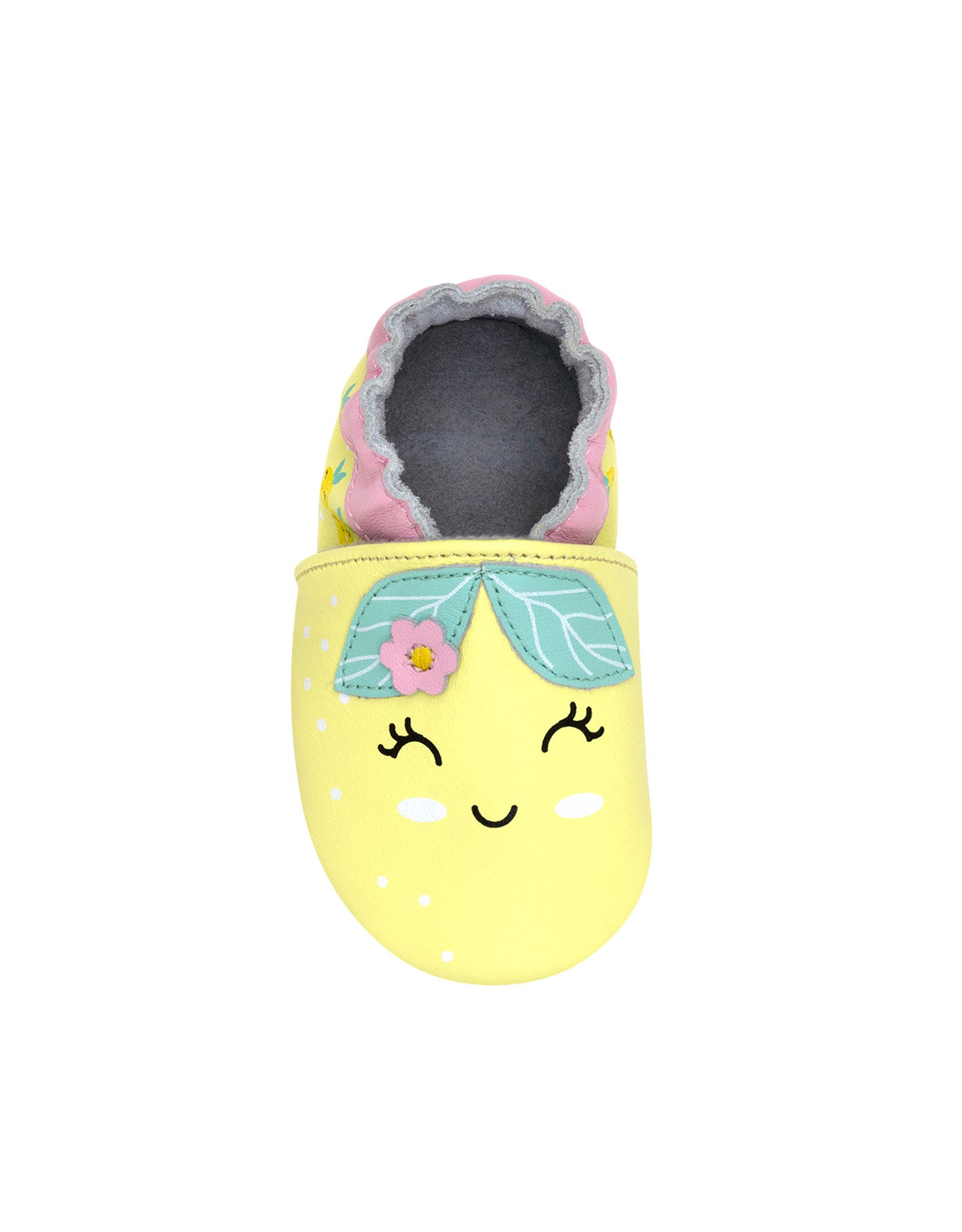 Sunny yellow tones and playful lemon details make Happy Lemon Soft Soles a fun everyday favorite. The flexible fit supports natural foot development, finished with a slip-resistant suede sole for stability.