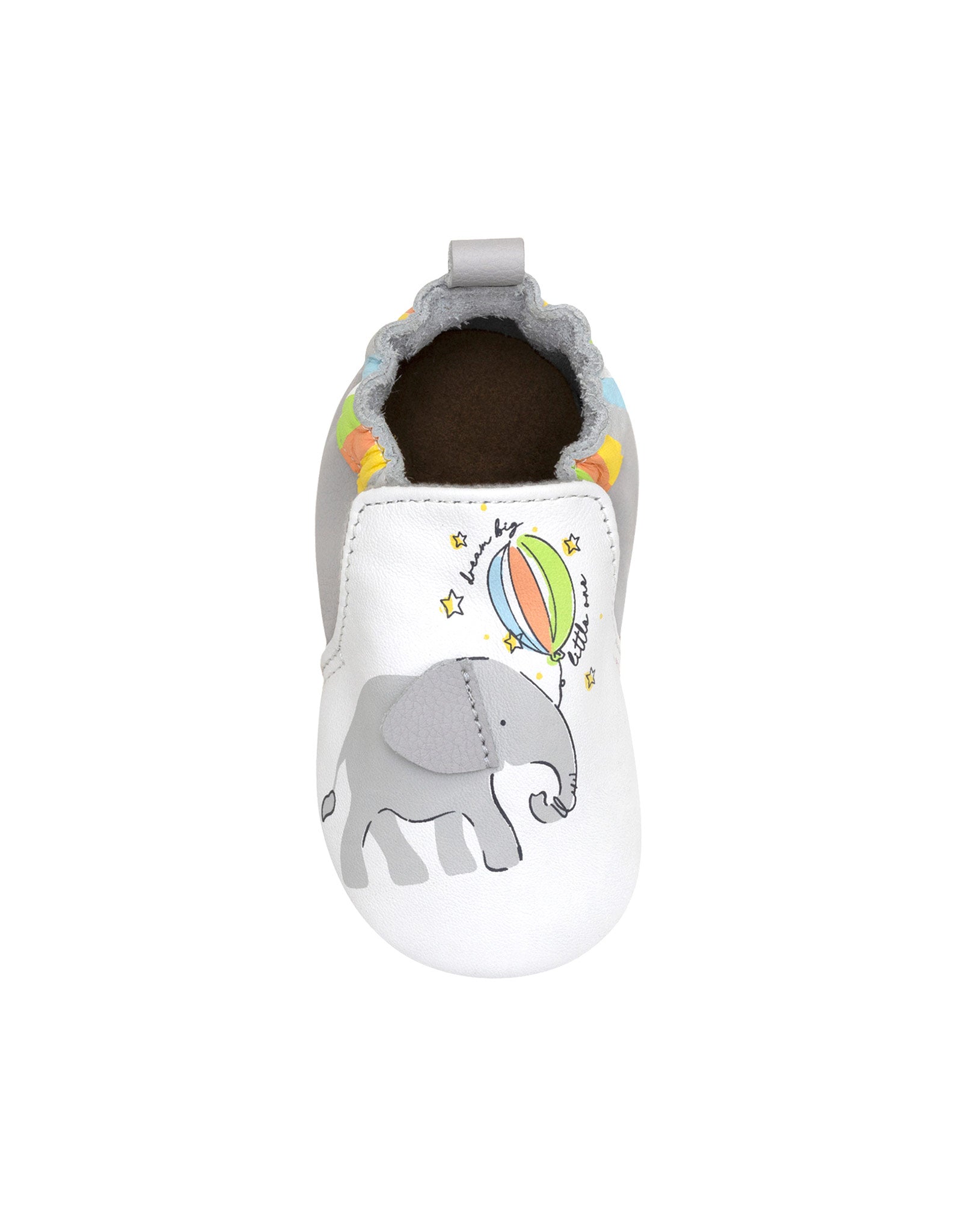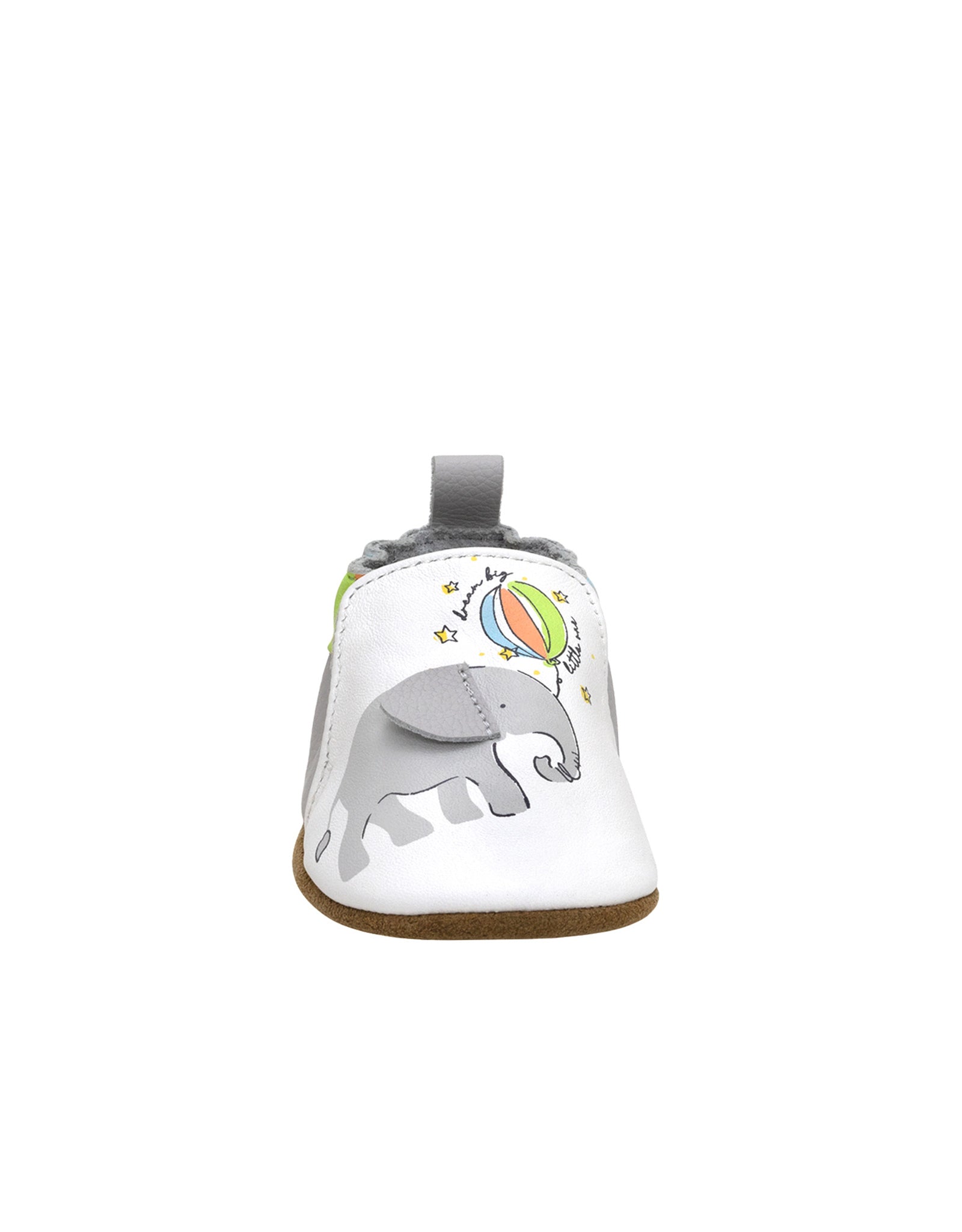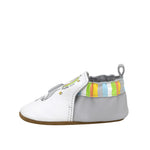 Little One Soft Soles in White combine adorable elephant character details with everyday functionality, offering flexible soft soles for natural movement, a slip-resistant bottom for traction, and an easy pull-on fit that keeps baby shoes secure throughout the day.