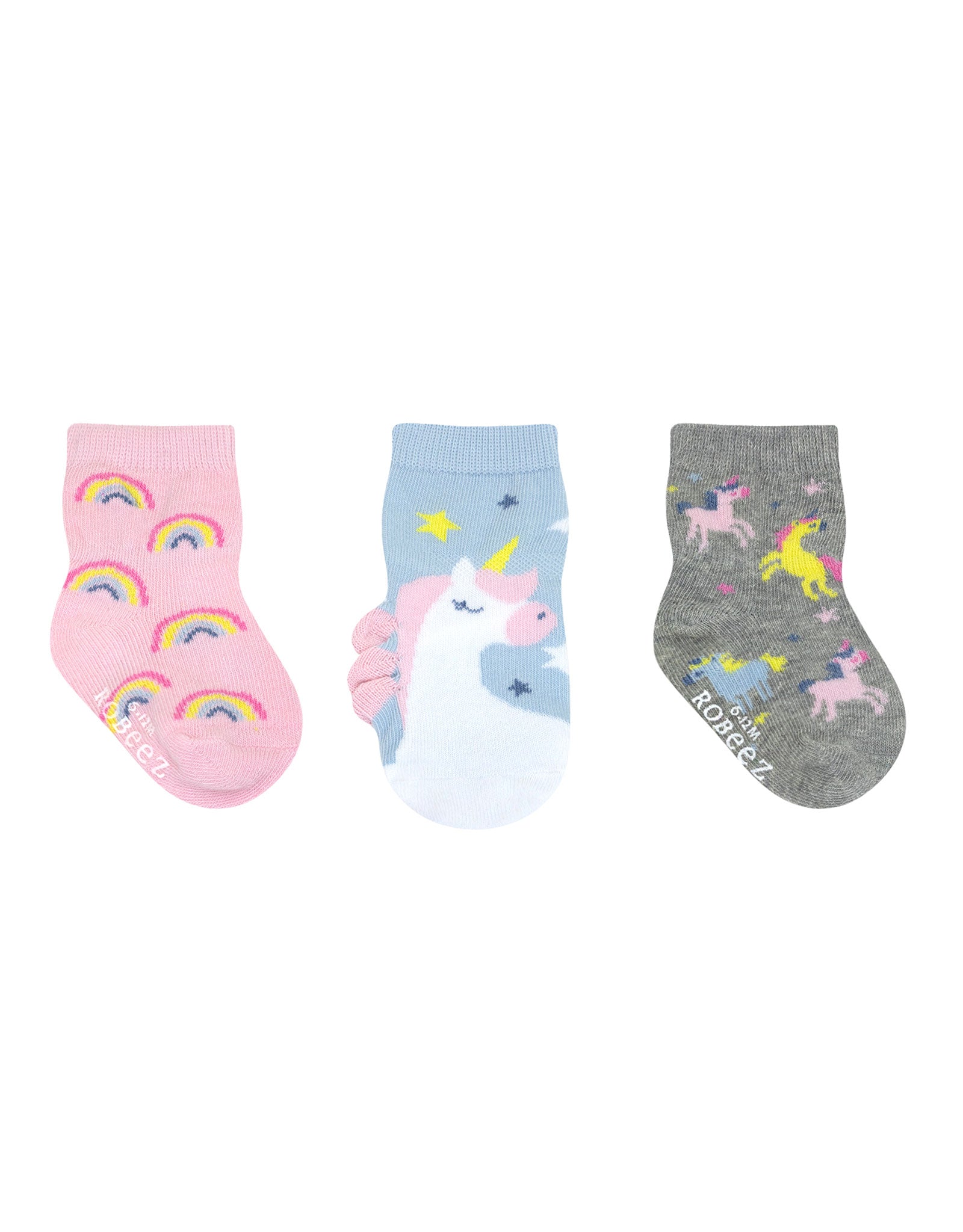 Whimsical details and soft colors make Believe In Magic 3-Pack Baby Socks in Pastel a delightful everyday essential. Designed to stay on with non-skid soles, this kick-proof set is perfect for gifting or adding a magical touch to daily outfits.