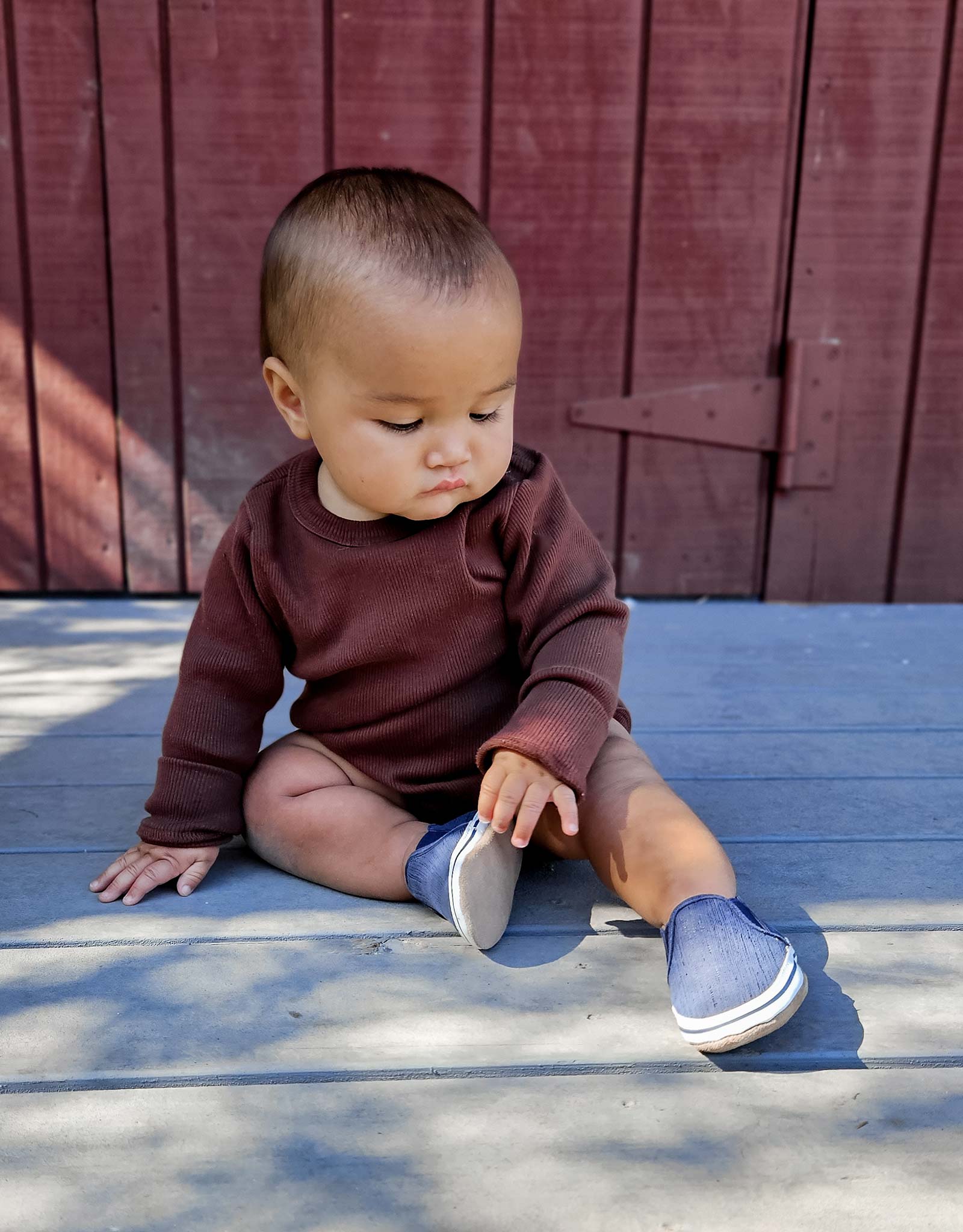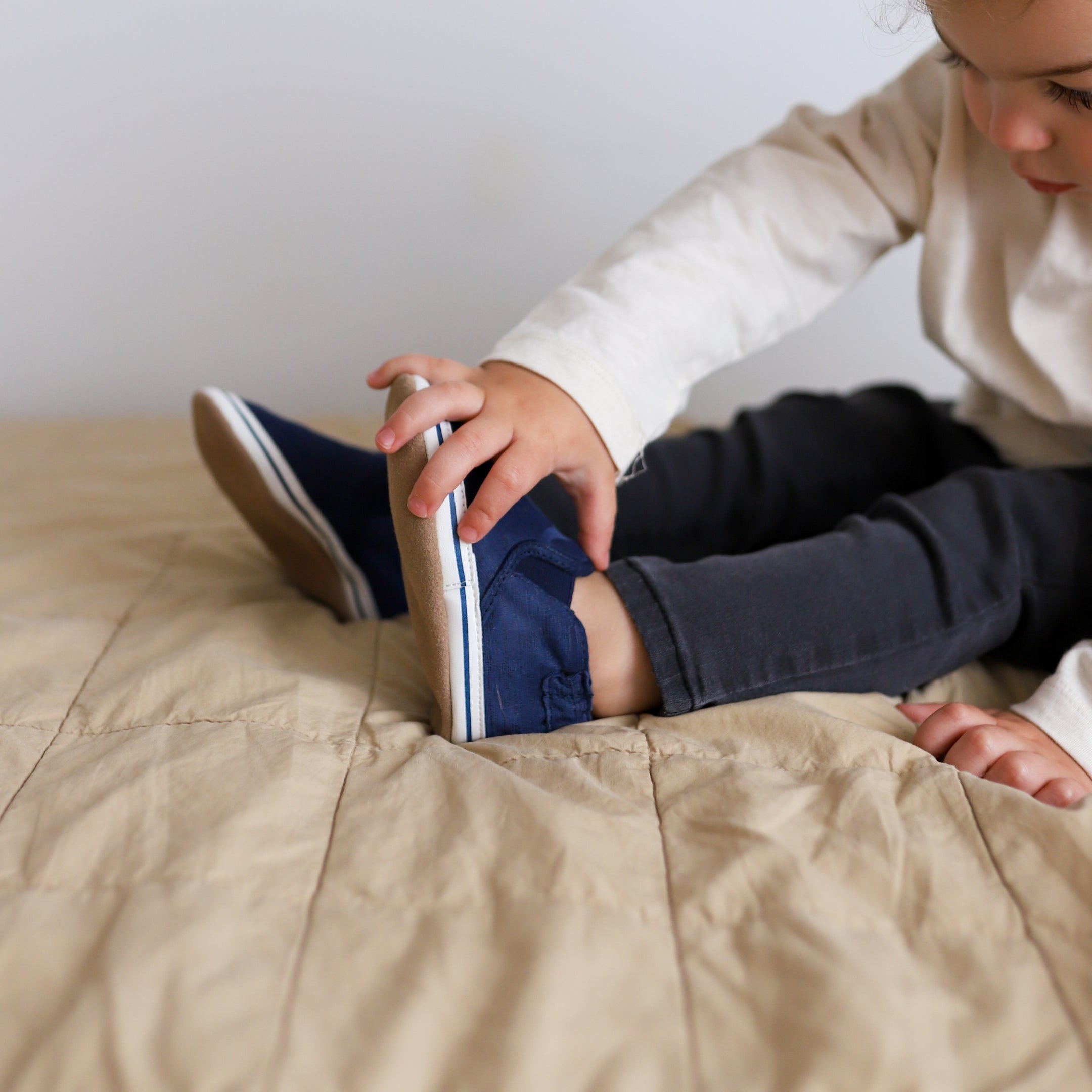 Robeez is the trusted brand for baby shoes that support natural growth and development. Our Soft Soles, like the Liam Basic Navy, are approved by the American Podiatric Medical Association for promoting healthy foot development. With flexible suede soles that bend with every step, slip-resistant traction to help prevent falls, and kick-proof elastic ankles, these baby and toddler shoes stay secure while offering comfort all day. Robeez Soft Soles remain a parent favorite among our best sellers for infants, pre-walkers, and toddlers.