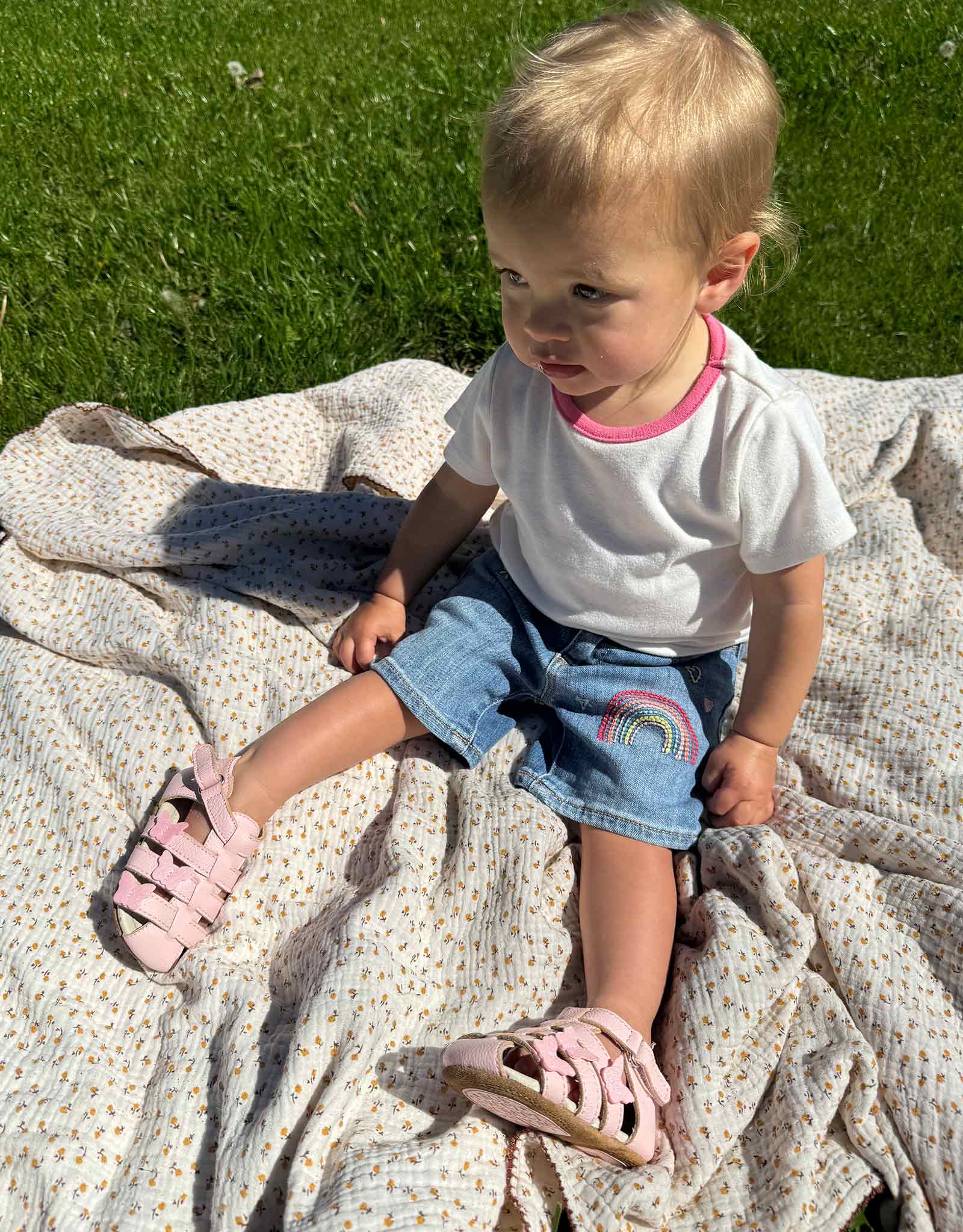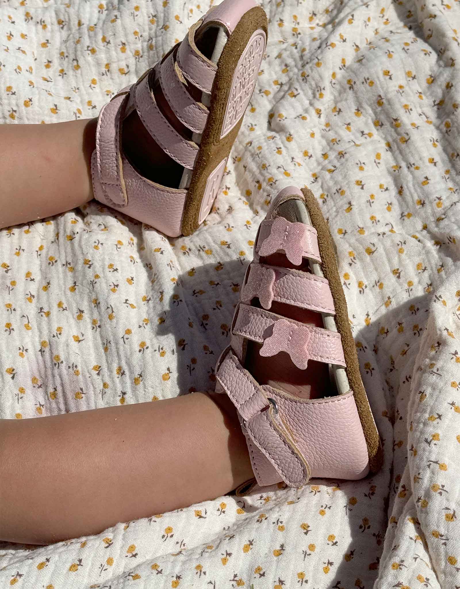 Tiny toes deserve the softest, sweetest style. Introducing the Mariposa First Kicks in Light Pink - a heavenly sandal that's just as comfy as it is cute.Designed in a classic fisherman sandal silhouette, they feature a leather upper, and a flexible suede sole that offers stability and protection for little feet learning to walk. Adorned with delicate light pink butterflies, these sandals add a charming, playful touch to any outfit. Perfect for warm-weather adventures, the Mariposa First Kicks provide both comfort and confidence for little ones on the move.