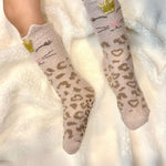 The Princess Cat Cozies 3-Pack Crew Socks in Neutral for Toddlers and Kids bring a touch of royalty and charm to little feet. Made with soft, cozy yarn, this set includes three pairs: a brown pair featuring an adorable cat with 3D ears and a 3D crown, a pastel pink pair for a sweet and simple look, and a beige pair with heart patterns in neutral tones. Perfectly comfortable and stylish, these socks will add a fun, playful twist to any outfit.