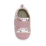 Rina First Kicks in Pink combine playful style with thoughtful design for early walkers. Featuring a soft floral pattern with blush pink accents, these baby shoes add a sweet, modern touch to any outfit while staying practical for everyday wear. Designed to be kick-proof and easy to slip on, they stay securely in place for active little ones. A roomy fit supports growing feet, while the lightweight sole and textured bottom help provide comfort and confidence as your child takes their first steps.