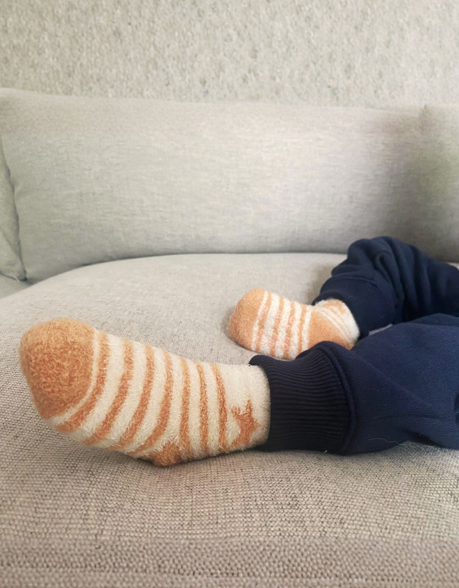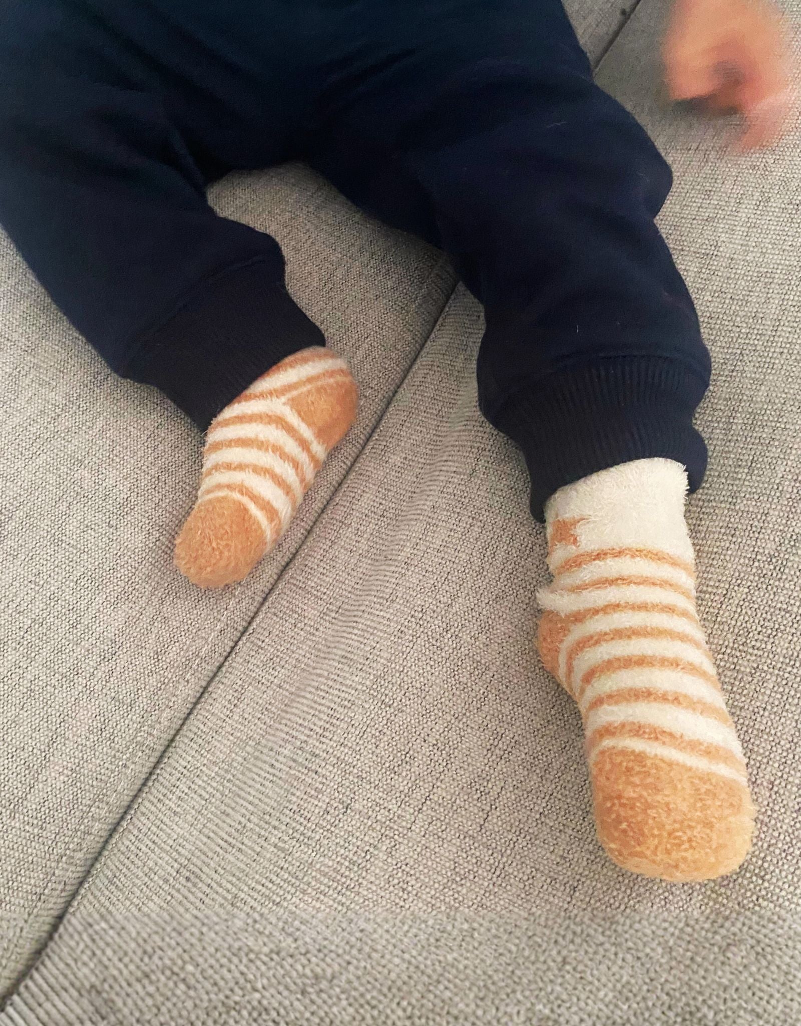 Parents love our socks because they stay on in all kinds of play. An elastic gather at the ankle ensures that our socks stay on while a skid resistant application on the soles helps prevent slips and falls. Once you try our socks, you and your baby will love them as well