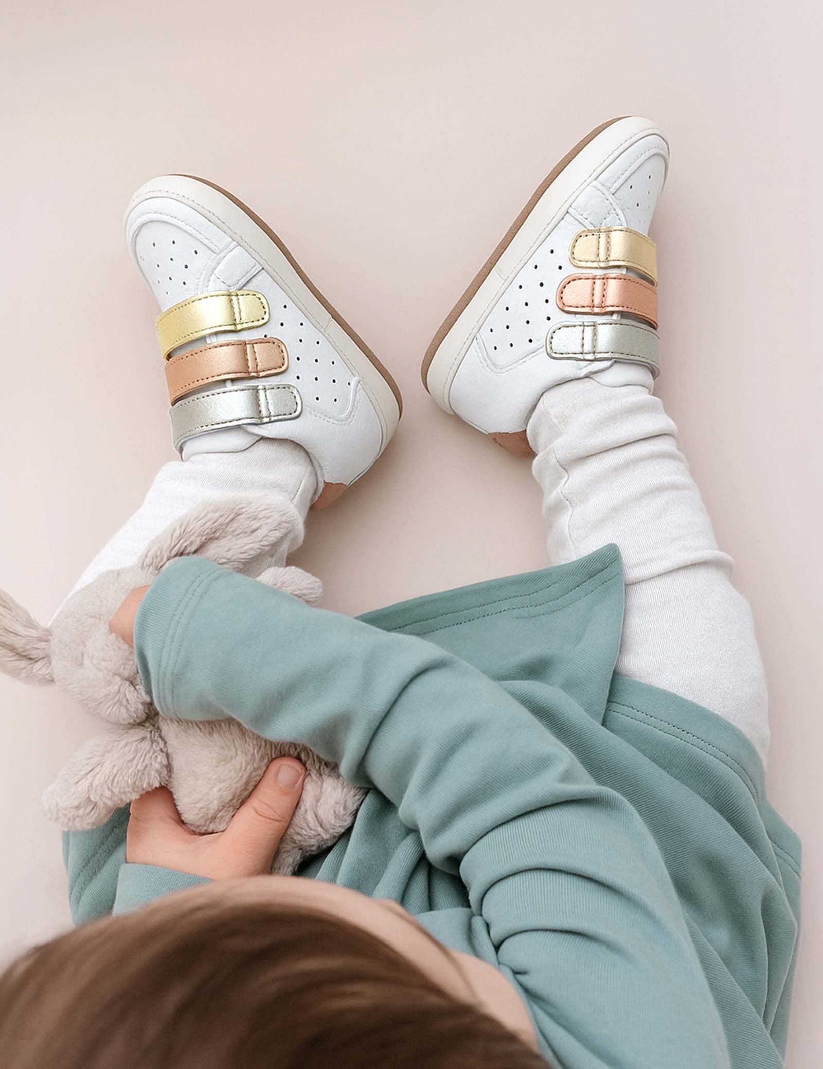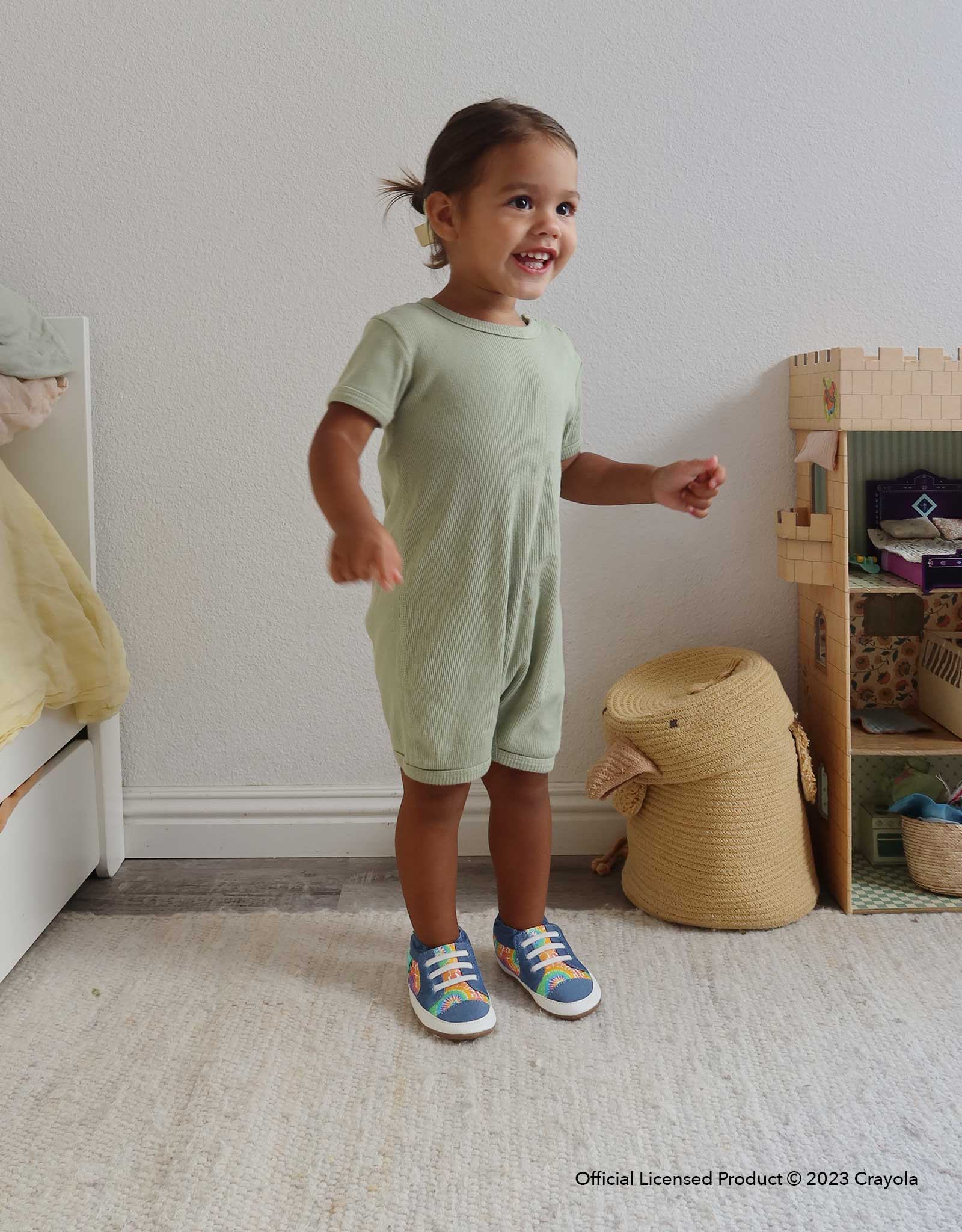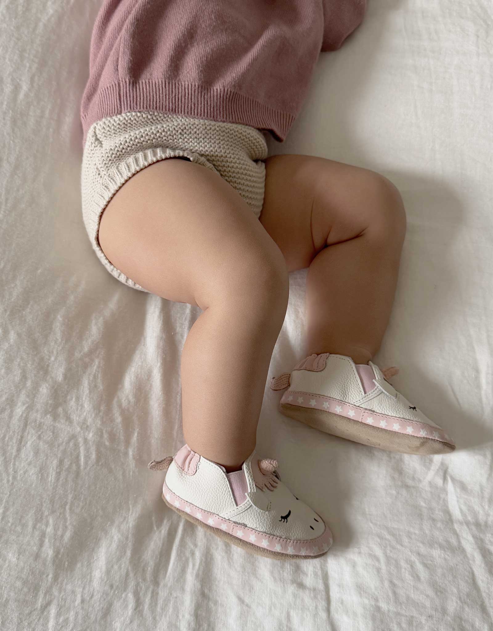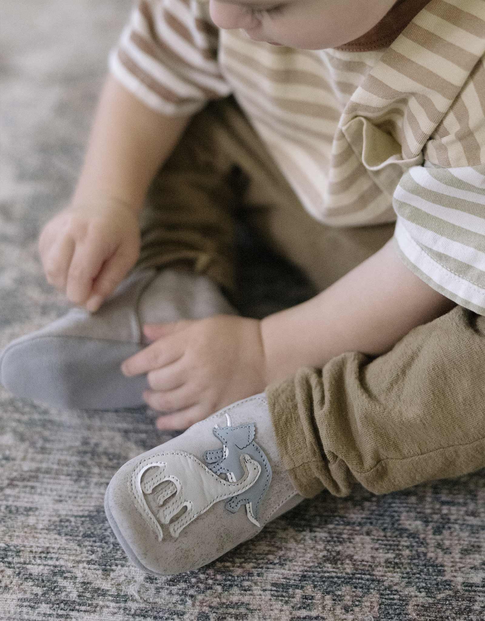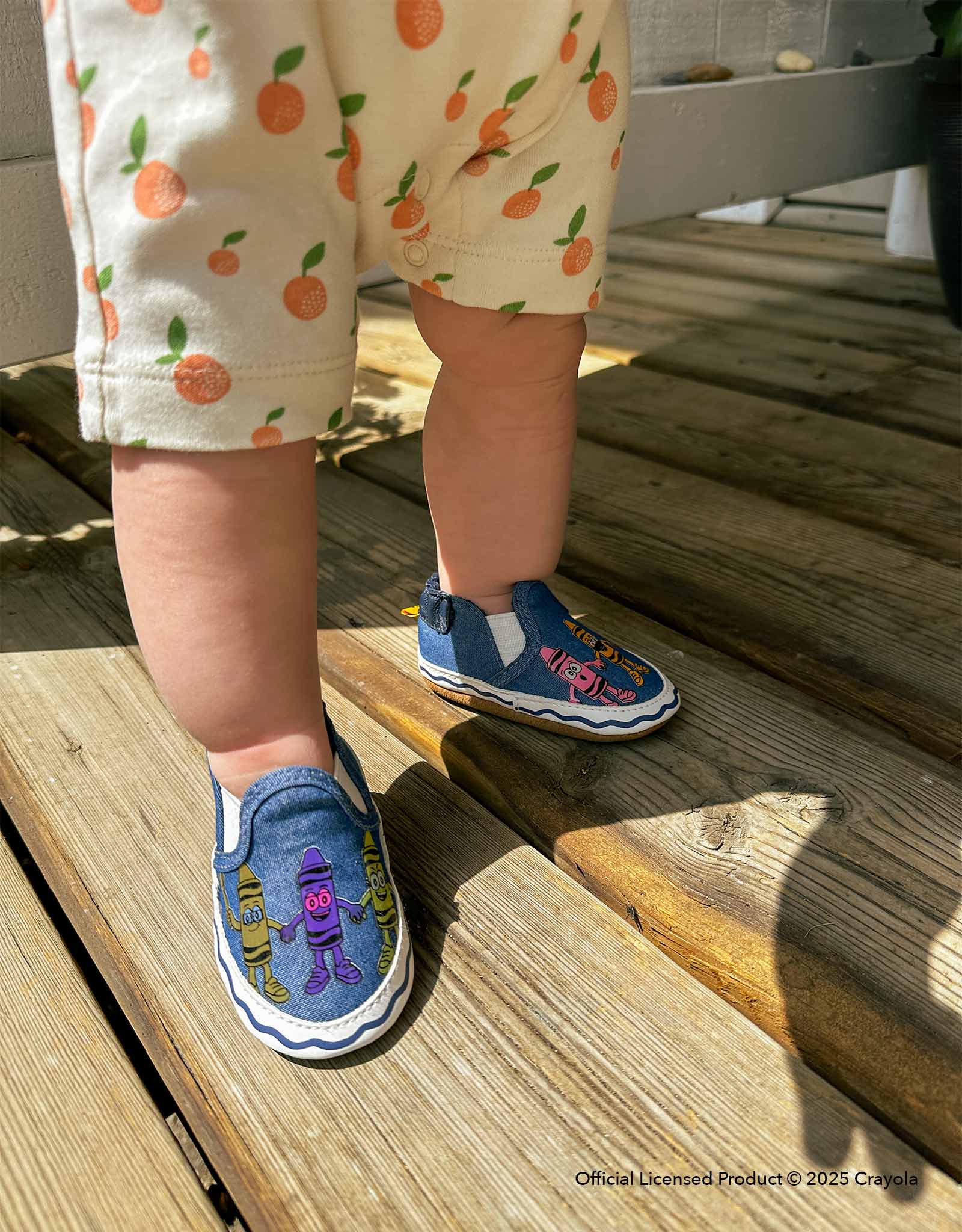 Designed to mimic bare feet, these soft-sole shoes are APMA-approved for supporting healthy foot development and feature no-slip suede soles.
