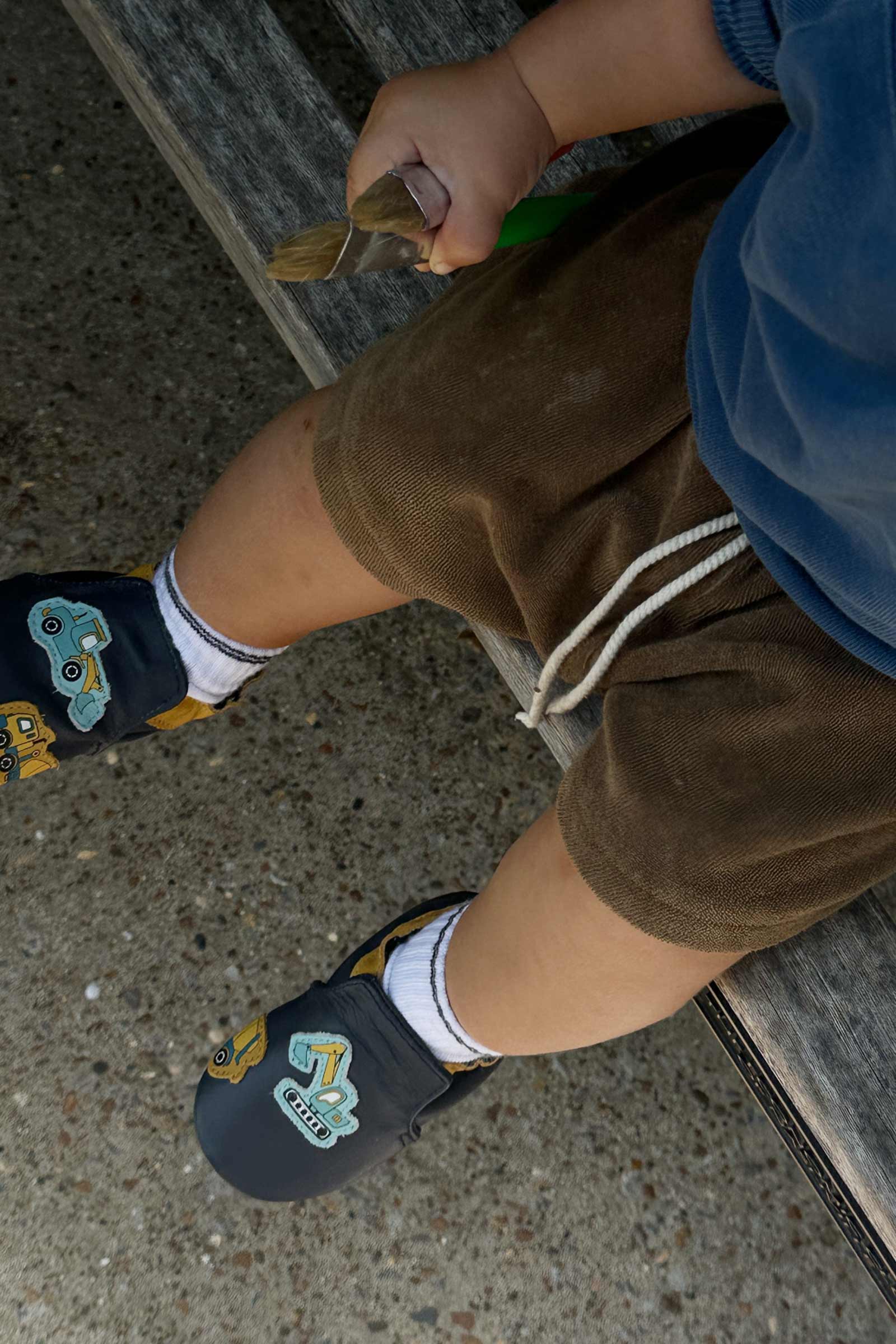 The Build Your Dreams Soft Soles in Navy inspire little builders to explore and imagine. Featuring a few construction vehicle graphics on a rich navy background, these soft soles combine fun design with everyday comfort. Crafted with a flexible suede outsole and a soft upper, they provide gentle grip and support for little feet as they take their first steps. With a roomy fit that encourages natural movement, these shoes are perfect for dreamers ready to build their next adventure.