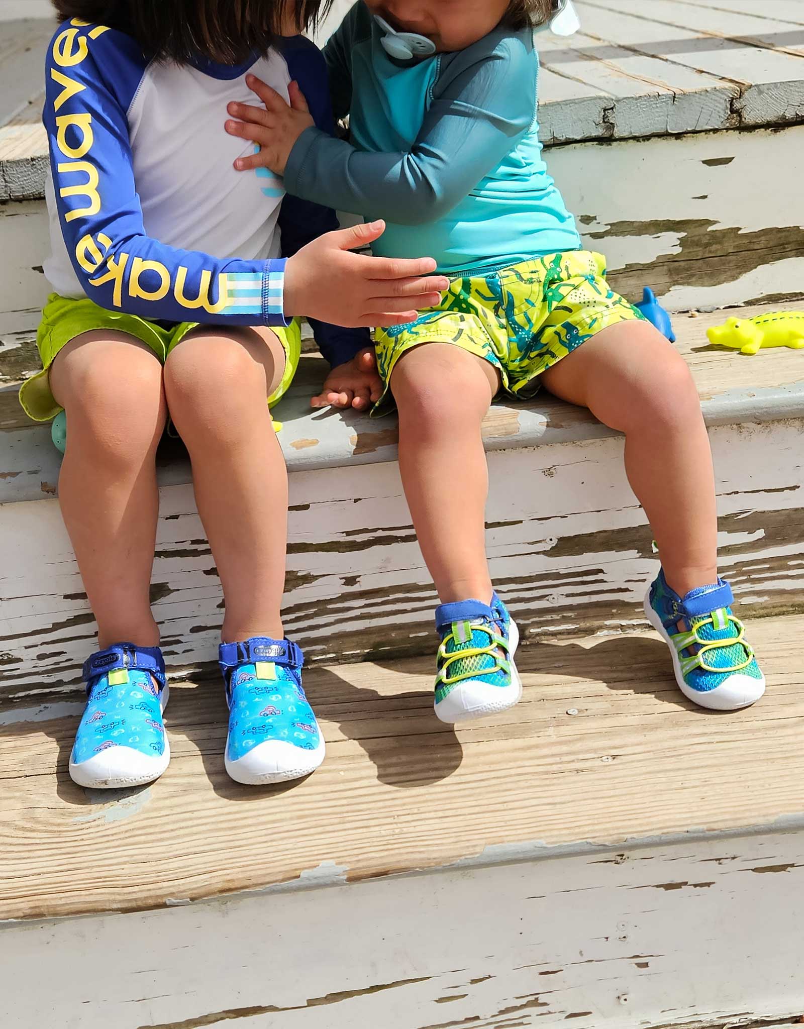 - Stretchy, quick-drying, and made for play in and out of water—perfect for beginner walkers and toddlers.