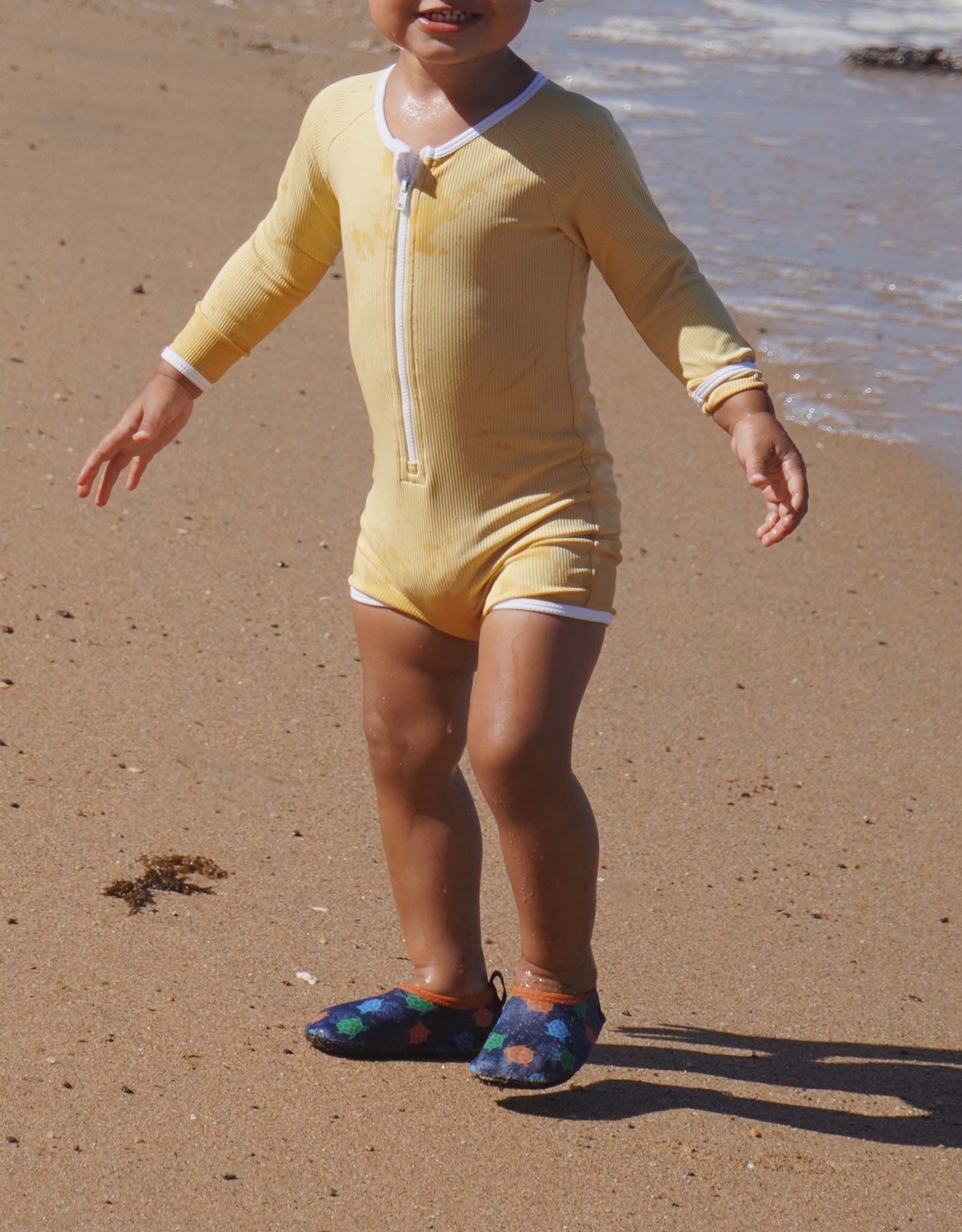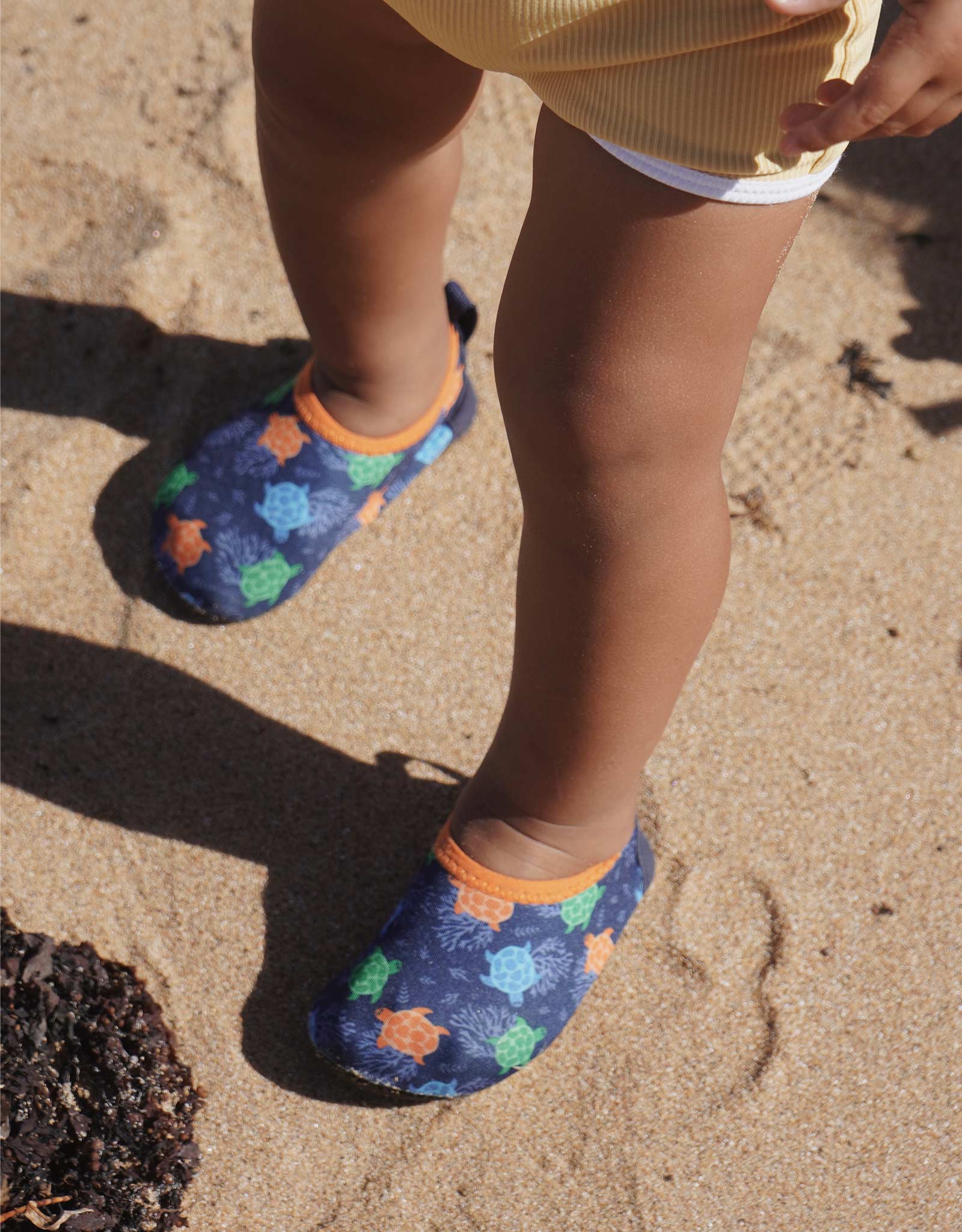 Your little one will be the talk of the pool party in these playful Sea Turtles Aqua Shoes. The vibrant sea turtle print adds a whimsical touch, while the stretchy spandex upper dries in a flash. The slip-on style makes for quick changes, and the sturdy TPR sole provides reliable traction on wet surfaces. These versatile shoes are perfect for beach days, pool time, and water play. Dive into adventure in style!