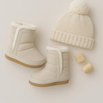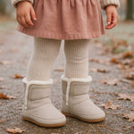 The Cozy Cuff Soft Sole Boots in Taupe are the perfect blend of warmth and style for chilly weather. Featuring a soft faux fur lining and a roll-down cuff, these boots offer a cozy, timeless look. The flexible soft sole allows your little one to move freely while staying warm, making them ideal for both indoor comfort and light outdoor adventures.