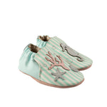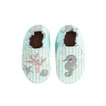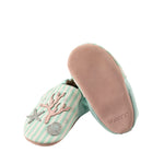 Dive into ocean-inspired style with Coral Soft Soles Turquoise. Featuring playful appliqués of a glittery seahorse, coral, and starfish, these baby shoes bring seaside charm to every tiny step. Designed with a flexible, non-slip suede sole and gentle elasticized ankle, they ensure comfort, security, and healthy foot development. Perfect for pre-walkers and early explorers, these sea-themed soft soles make every adventure as magical as the ocean itself.