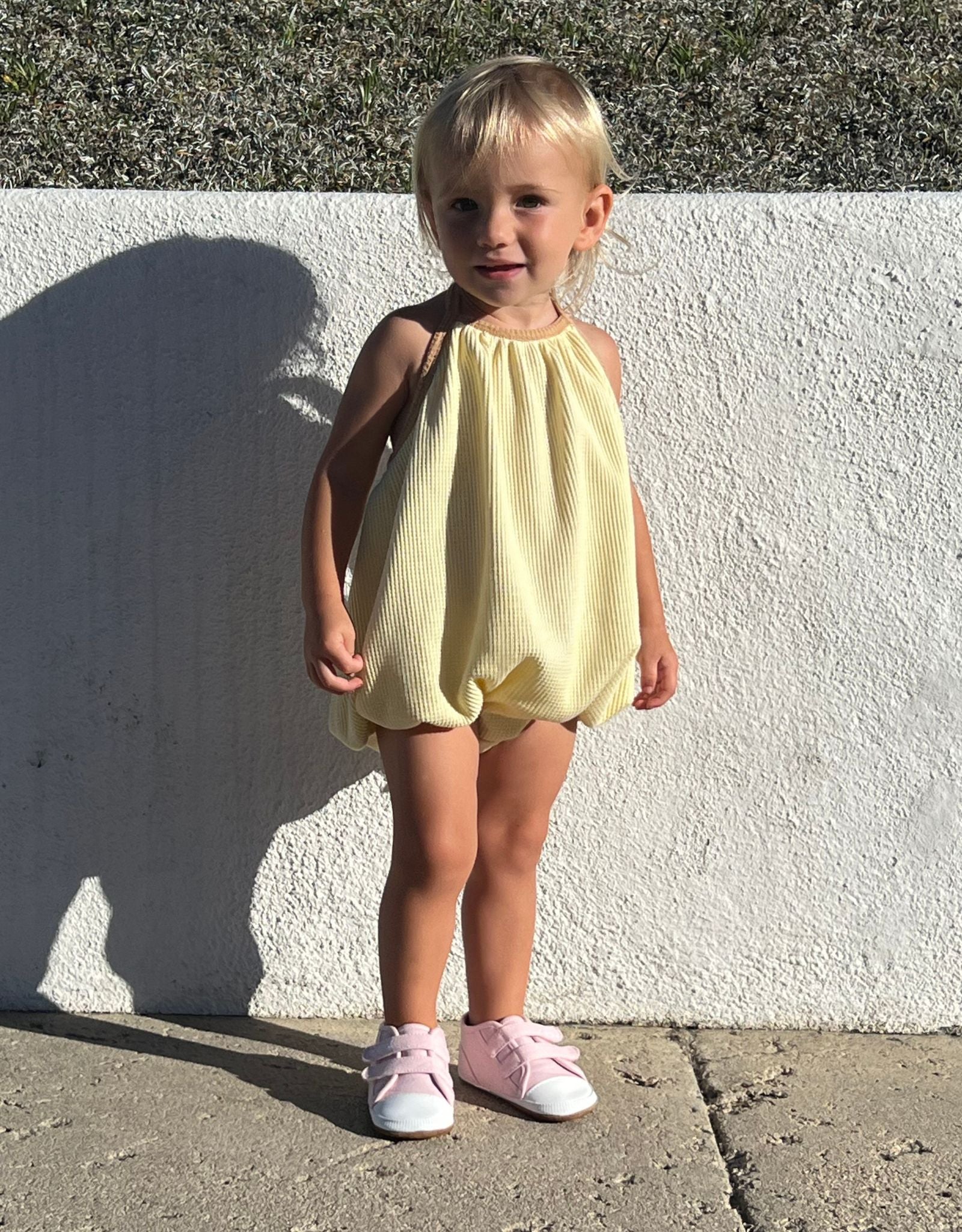 The Robeez Joleen Sneaker in Light Pink adds a casual yet stylish flair to your little one's wardrobe. This awesome navy canvas sneaker is accented with matching binding, contrast topstitch, logo embroidery and double loop strap closure detail. The First Kicks silhouette is made with more support and a narrower build than our Soft Soles style.