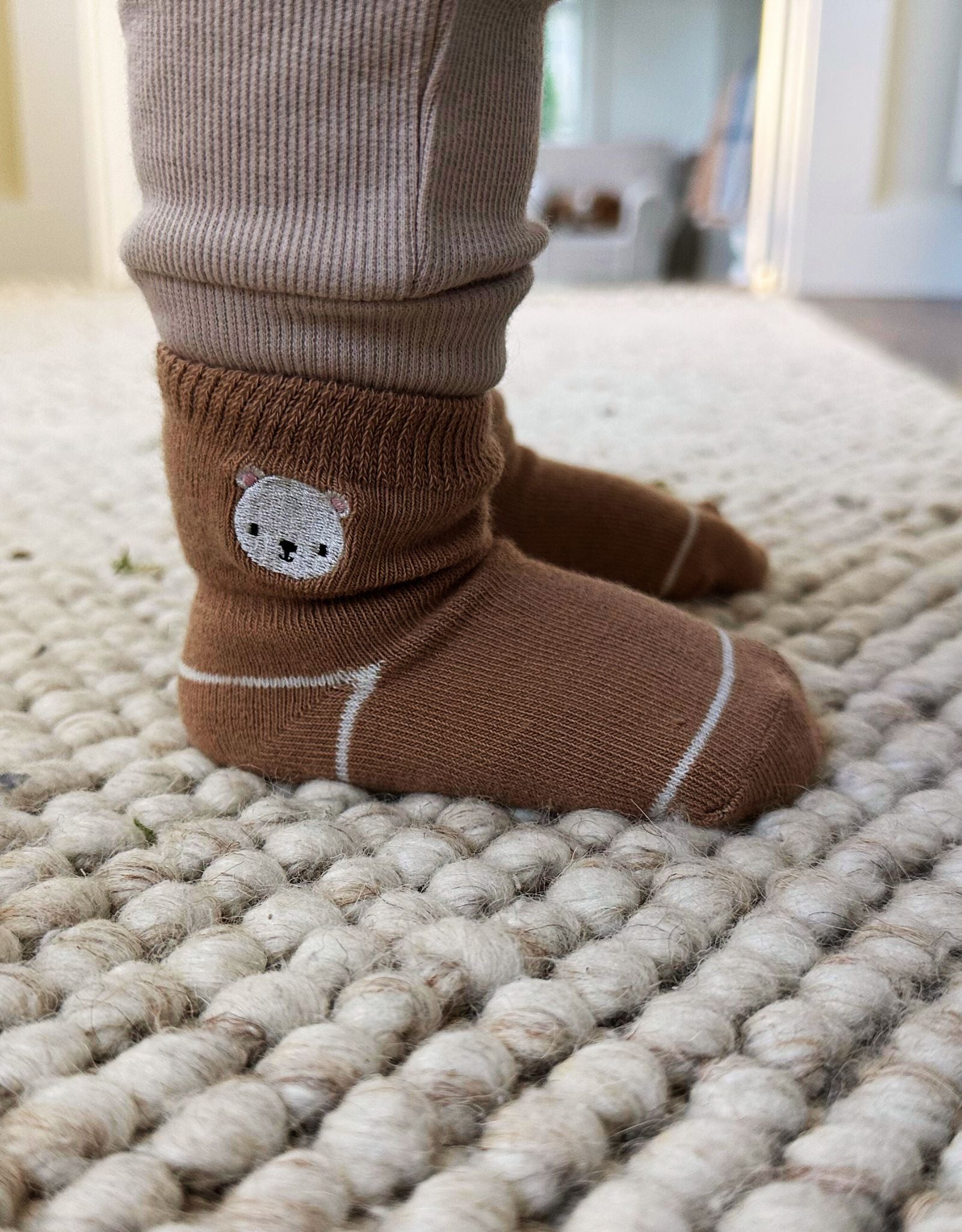 Parents love our socks because they stay on in all kinds of play. An elastic gather at the ankle ensures that our socks stay on while a skid resistant application on the soles helps prevent slips and falls. Once you try our socks, you and your baby will love them as well