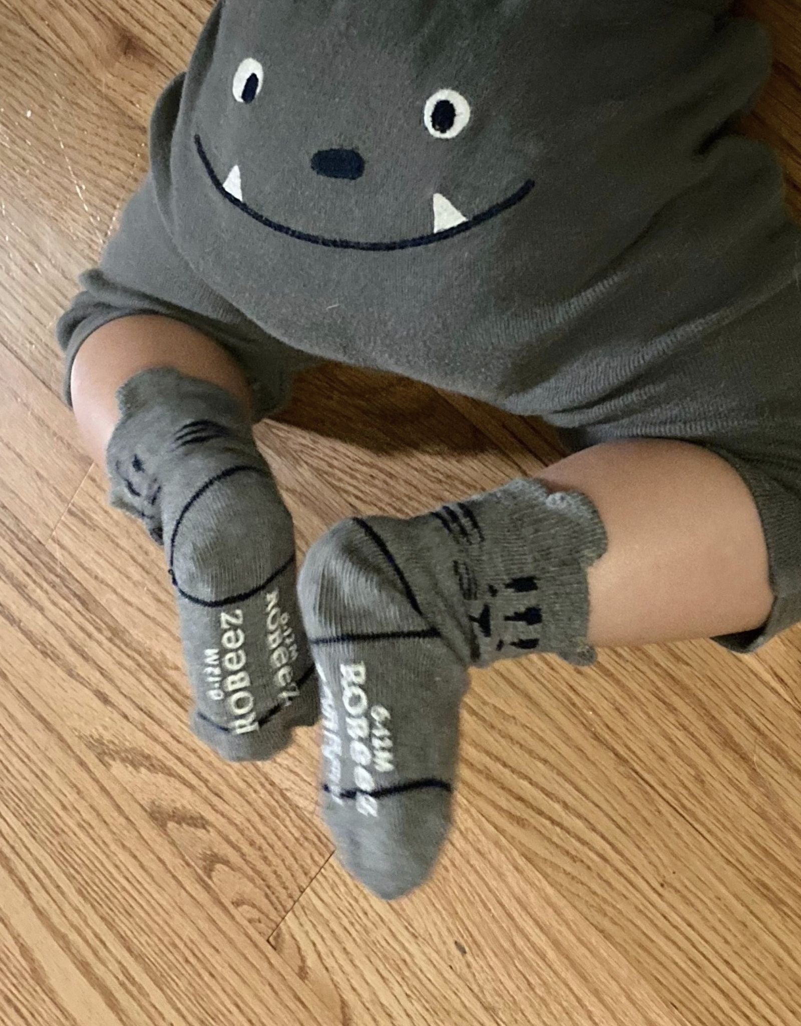 Note: Socks are lined when they have heavier art or placement of art is on the bottom half of the sock that will have more contact with babies' toes. This is done to ensure that the babies' toes do not get caught on the inside loops of the socks. Socks should fit correctly with and without the liner.