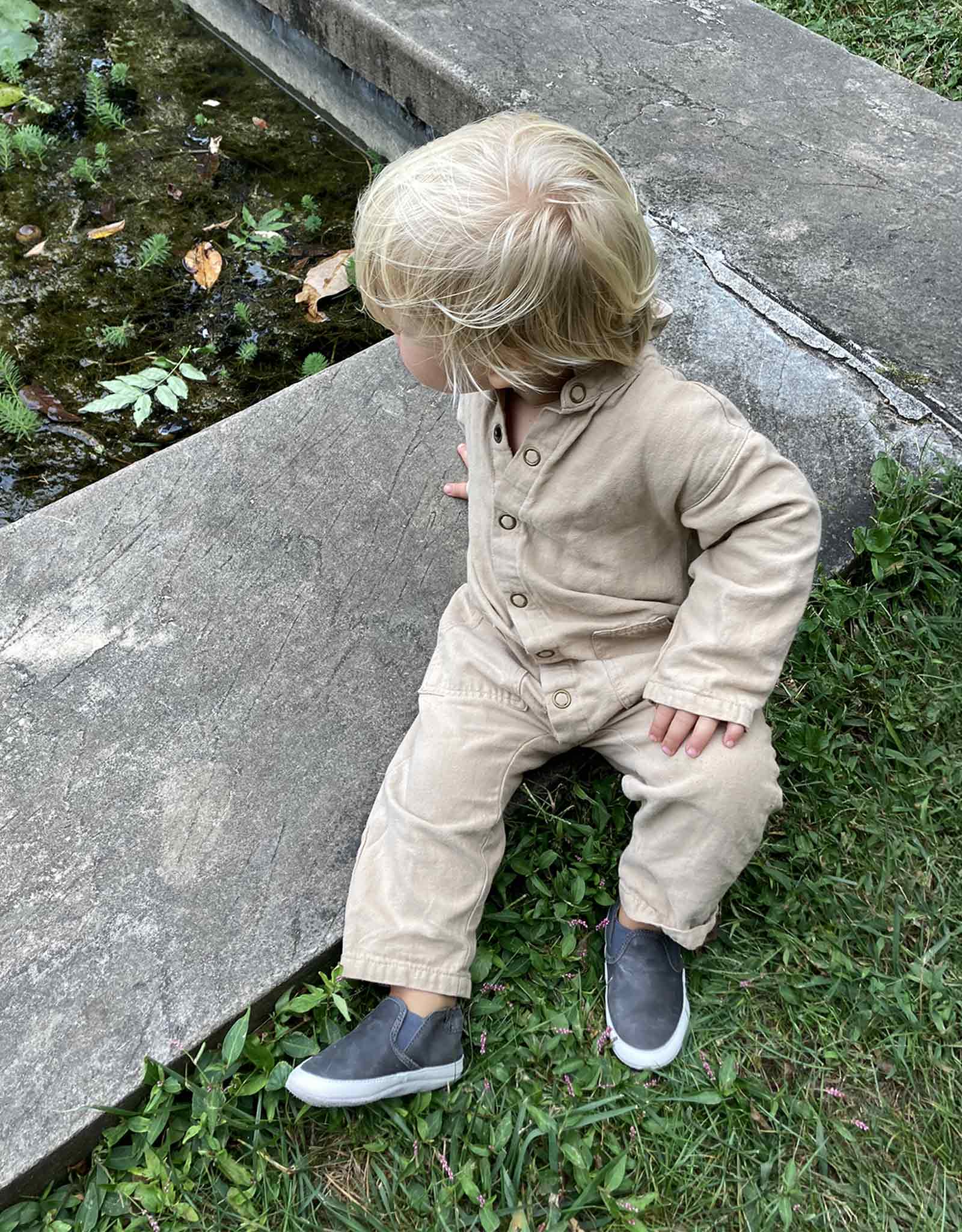 The elasticized accents on the sides and heel of these baby boy slip-on shoes make for an easy, snug fit that stays on without constricting, and the slip-resistant, suede sole helps little feet grip the floor as they learn to balance and walk. An easy-to-clean charcoal grey color ensures these little kicks will hide spills, dirt, and other typical baby messes. Keep your kid cozy while promoting healthy foot development with these baby boy slip-on shoes!