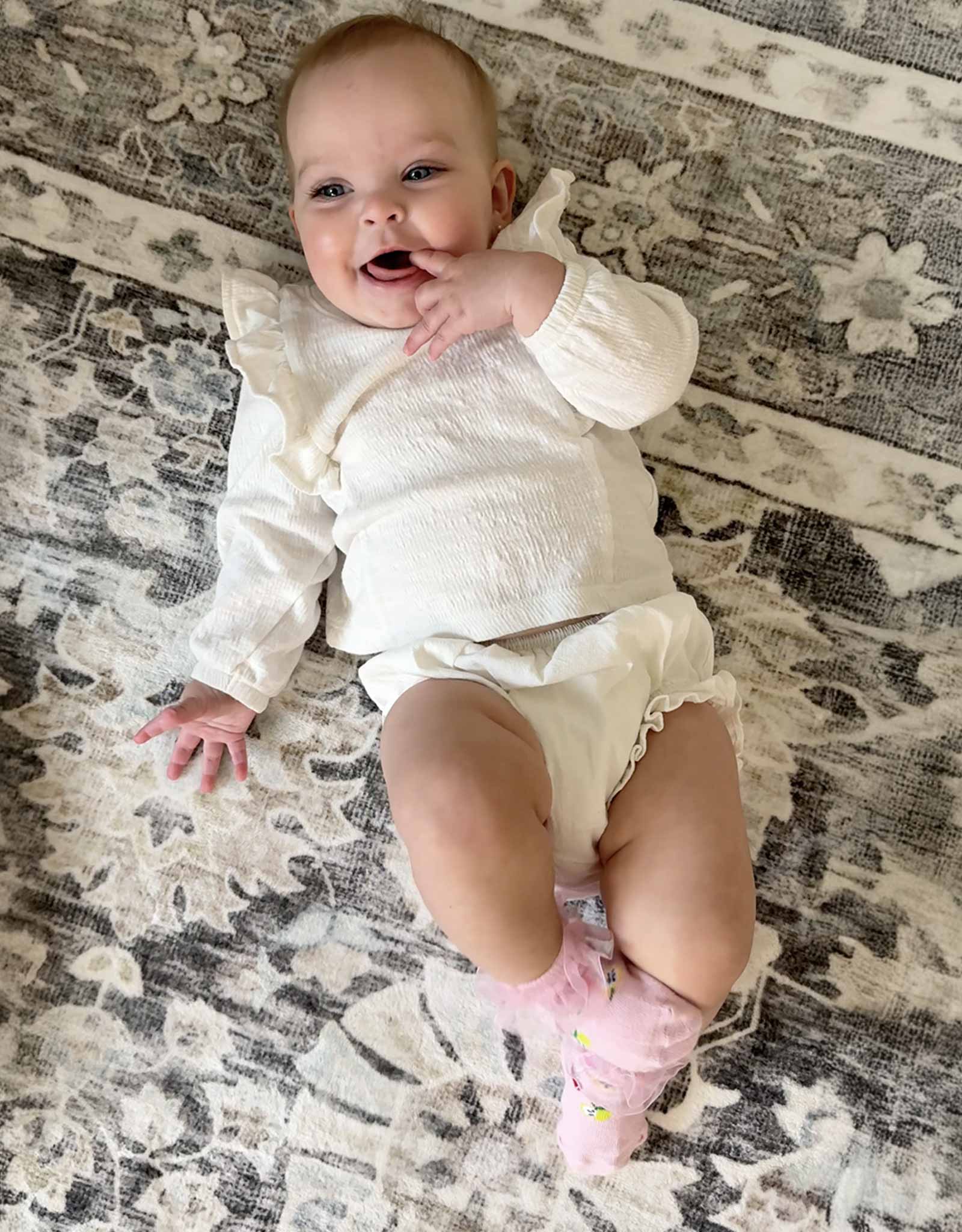 Parents love our socks because they stay on in all kinds of play. An elastic gather at the ankle ensures that our socks stay on while a skid resistant application on the soles helps prevent slips and falls. Once you try our socks, you and your baby will love them as well
