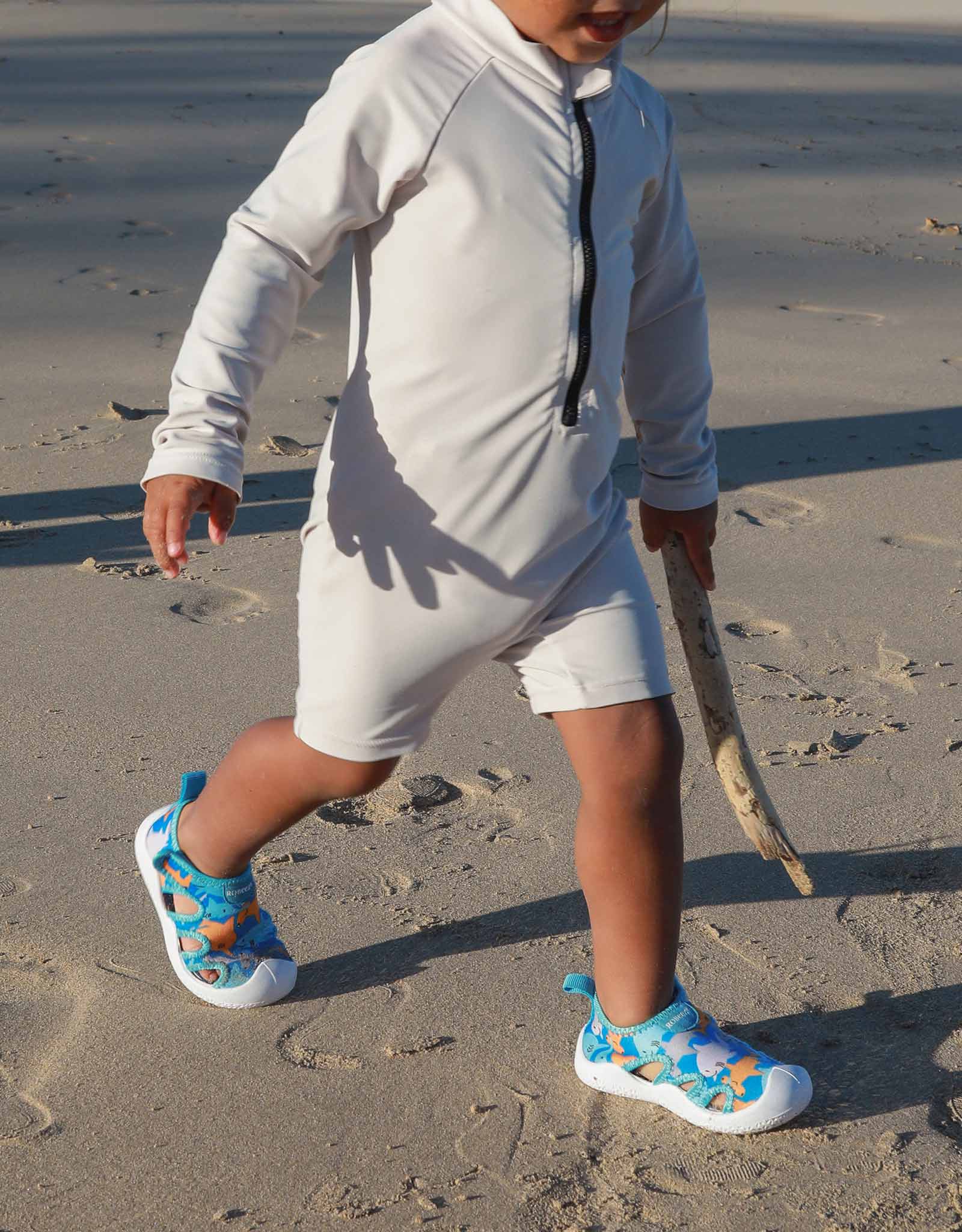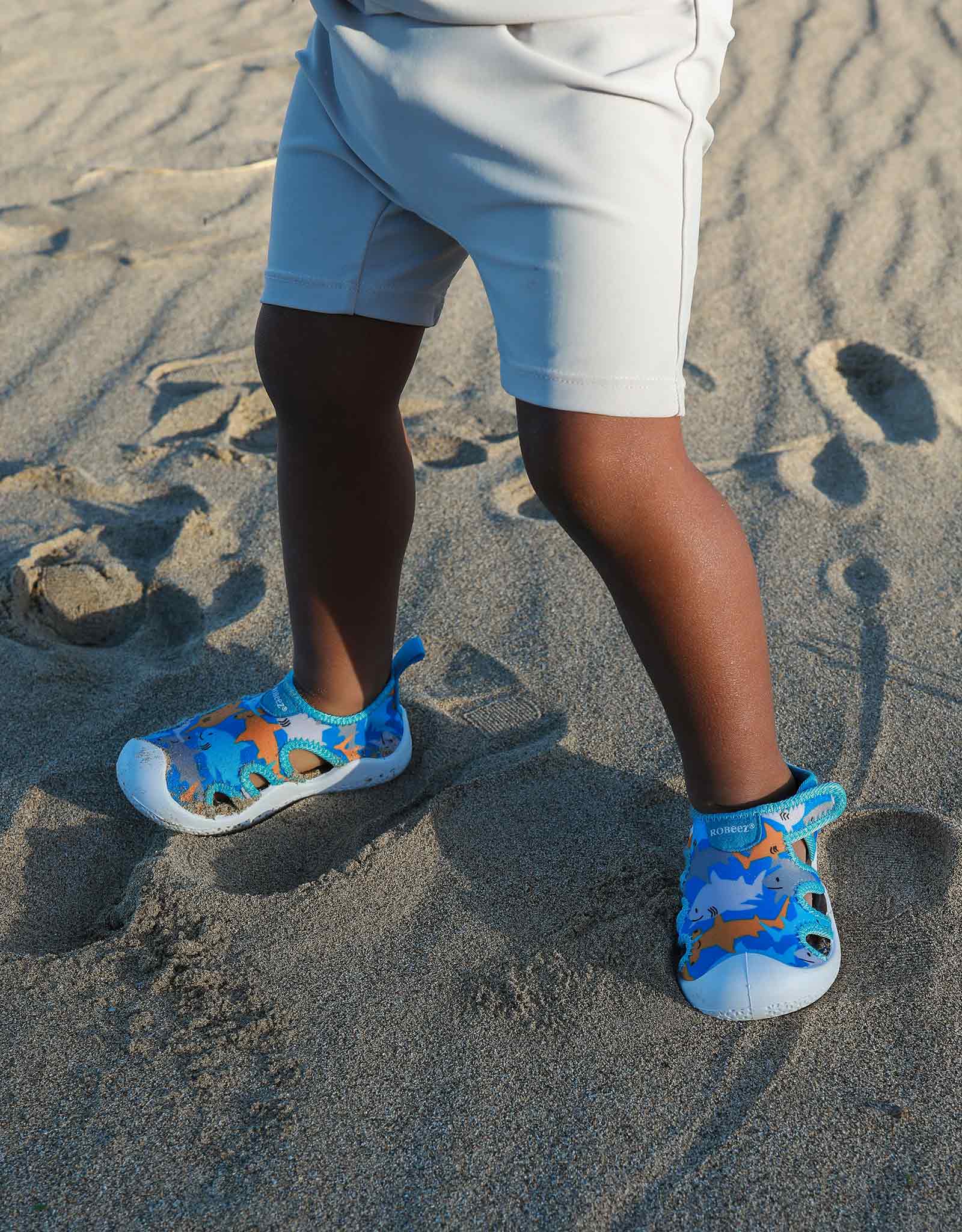 The Shark Time Water Shoes are perfect for your littles ones feet, combining comfort, durability, and a fun design. Featuring a breathable, quick-drying upper, these shoes keep little feet cool and comfortable during water activities. The grooved PVC outsole ensures reliable traction on wet and slippery surfaces, while the adjustable velcro strap allows for a secure and easy fit. With a playful shark-themed design, these water shoes are both practical and exciting, making them ideal for beach days, pool fun, and outdoor adventures.